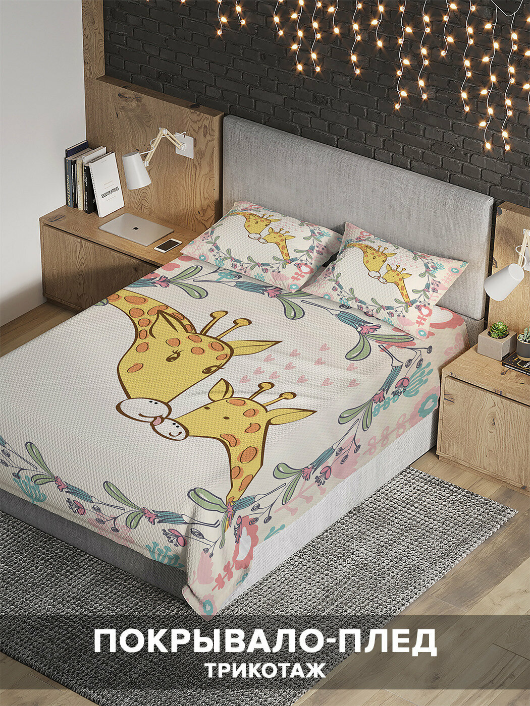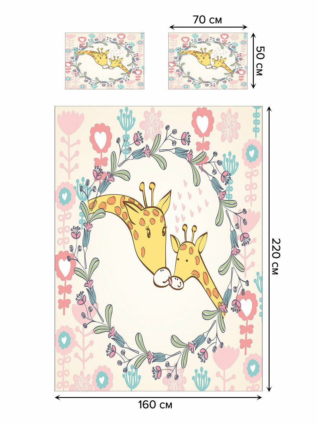 Модель: Покрывало Поцелуй жирафов 160х220 и две наволочки 50x70