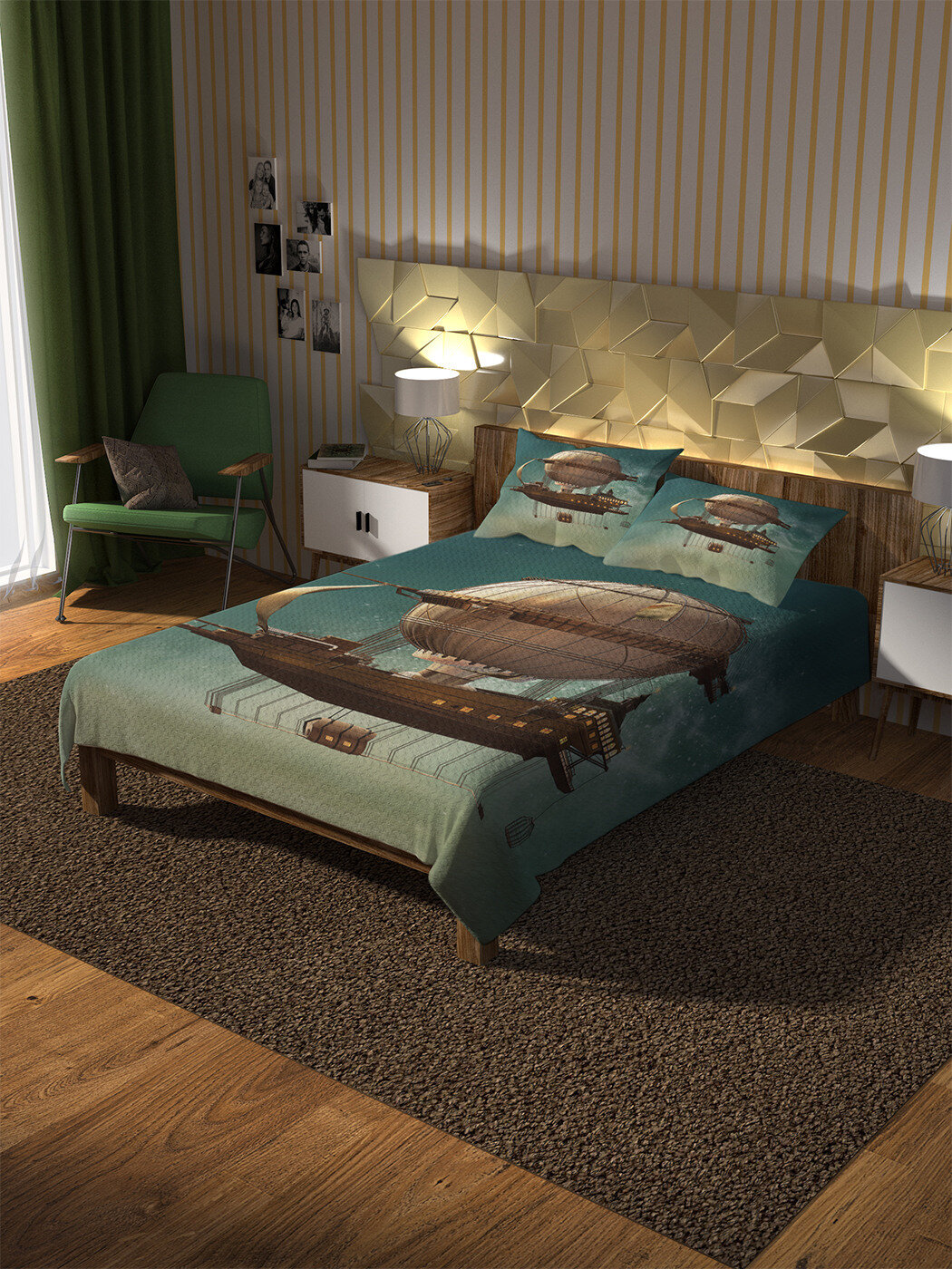 Модель: Покрывало Корабль в стиле Стимпанк 160х220 и две наволочки 50x70