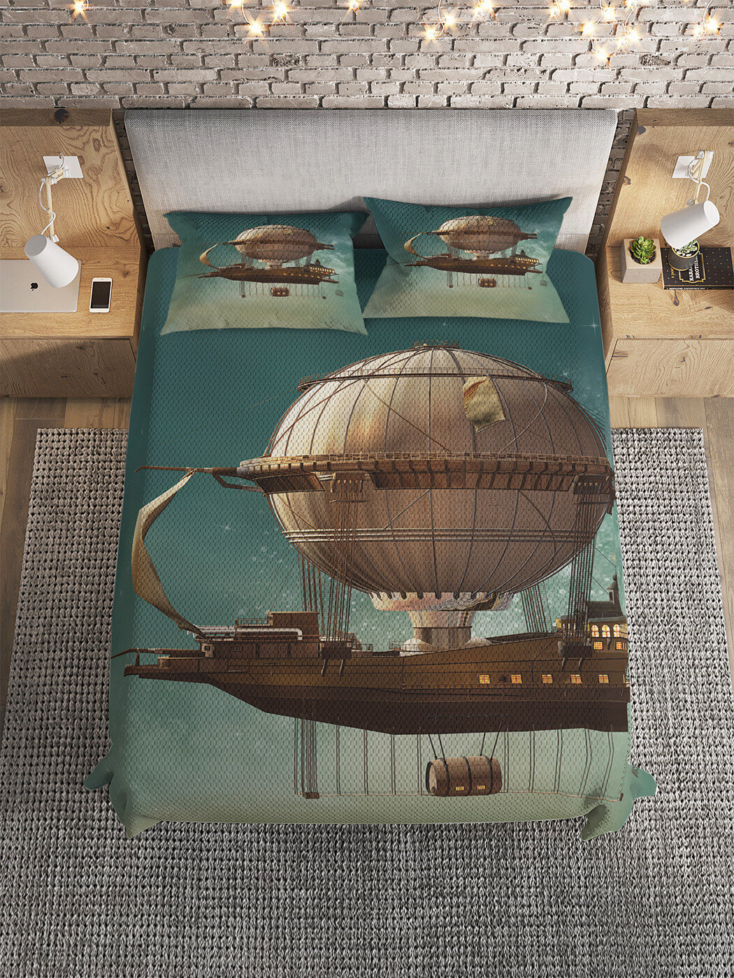 Покрывало с чехлами Ambesonne bcsl_27029 160x220 см голубой Покрывало Корабль в стиле Стимпанк 160х220 и две наволочки 50x70 (размер: 1.5-спальный)