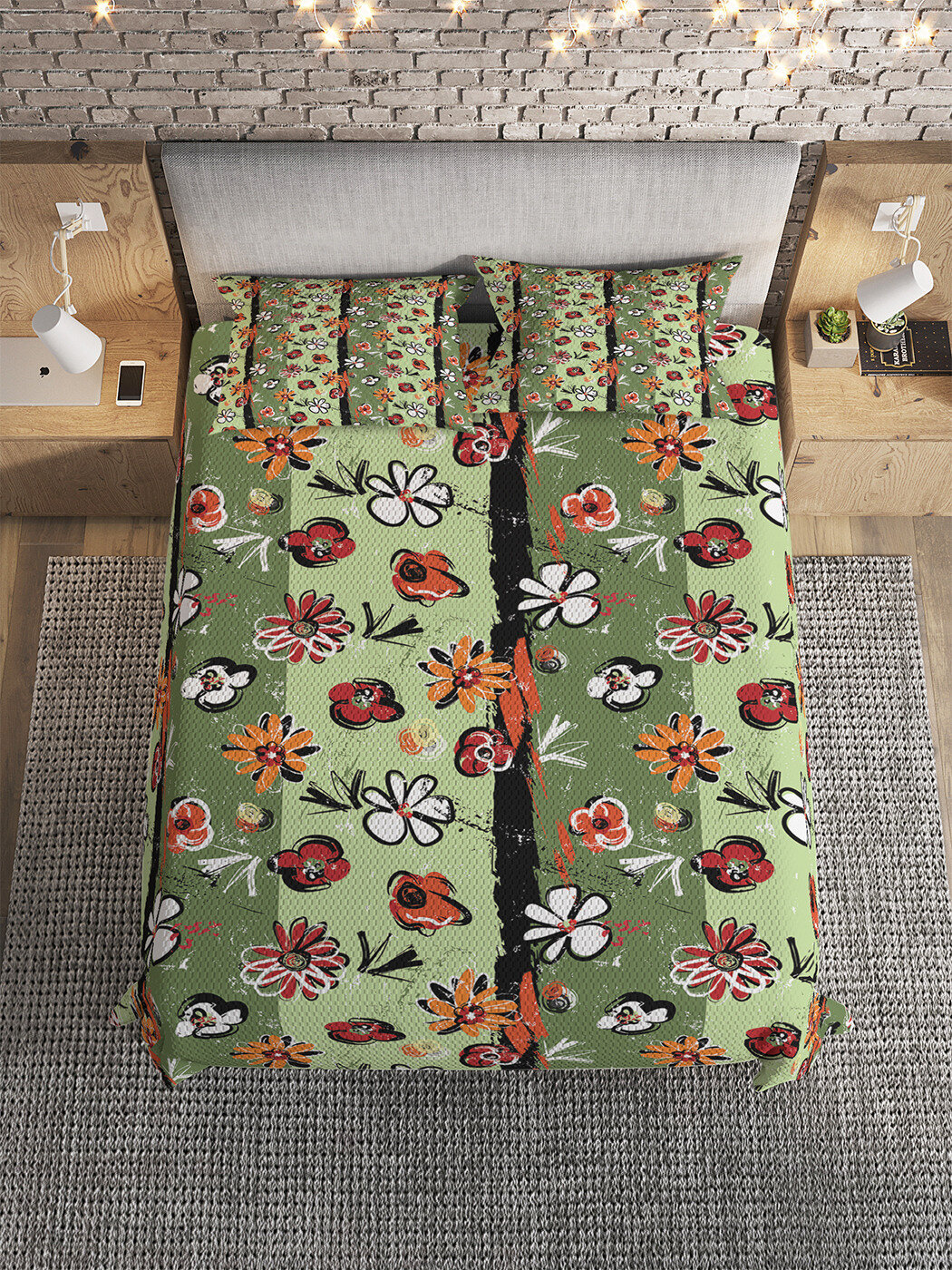 Покрывало Ambesonne 160х220 см с 2 наволочками 50x70 см Покрывало Цветы на полосатом фоне 160х220 и две наволочки 50x70 (размер: 1.5-спальный)