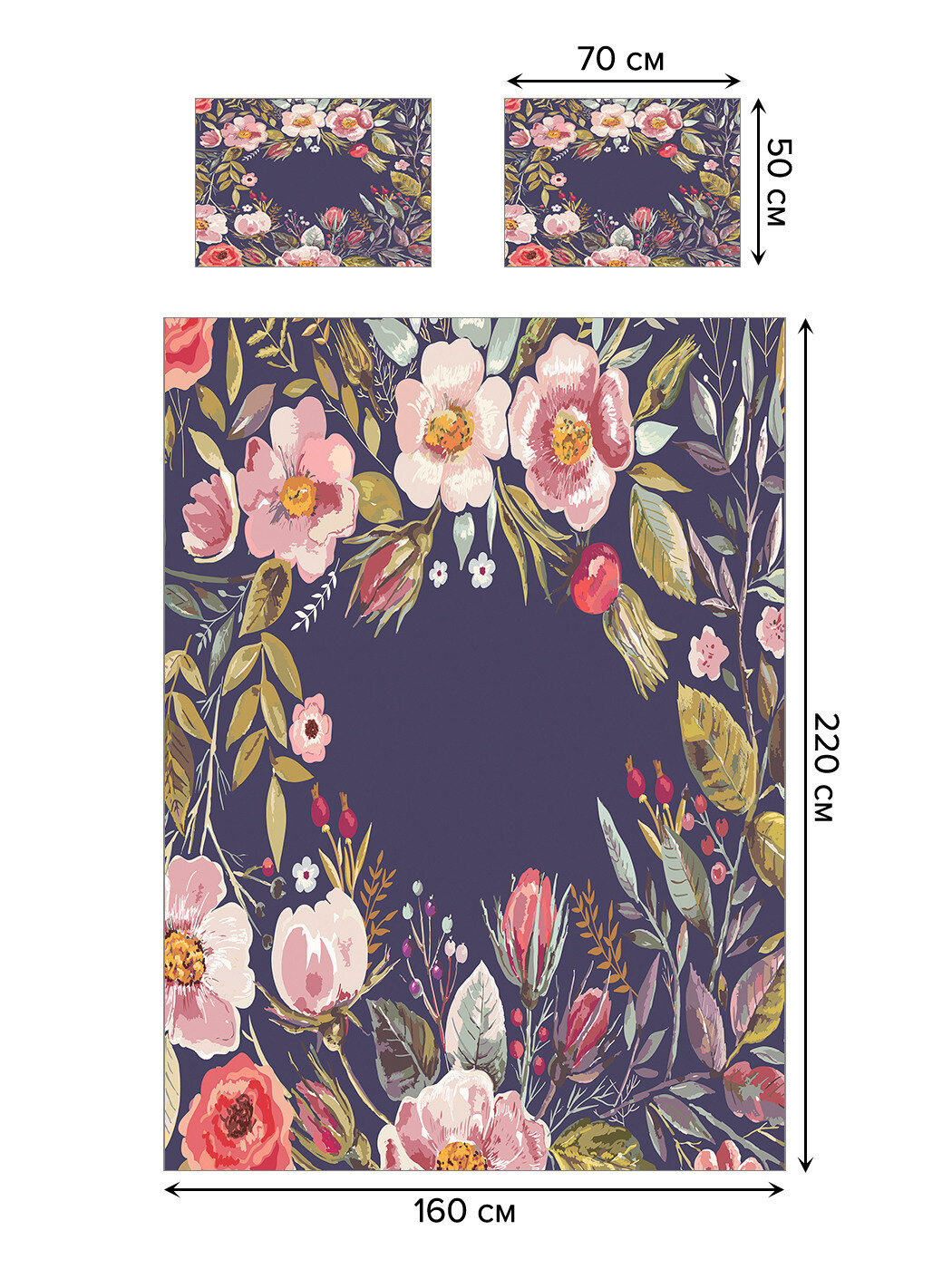 Комплектация: покрывало 160х220 см (1,5-спальное), наволочки 50х70 см - 2 шт.