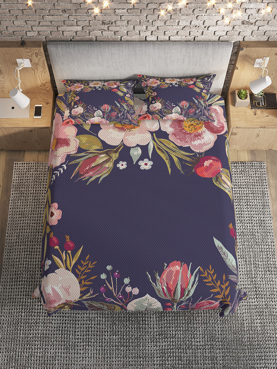 Покрывало с чехлами Ambesonne bcsl_68968 160x220 см фиолетовый Покрывало Букет из полевых цветов 160х220 и две наволочки 50x70 (размер: 1.5-спальный)