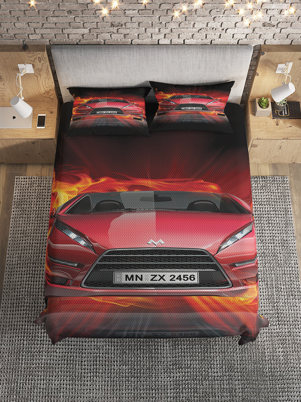Модель: Покрывало Спортивная машина в огне 160х220 и две наволочки 50x70