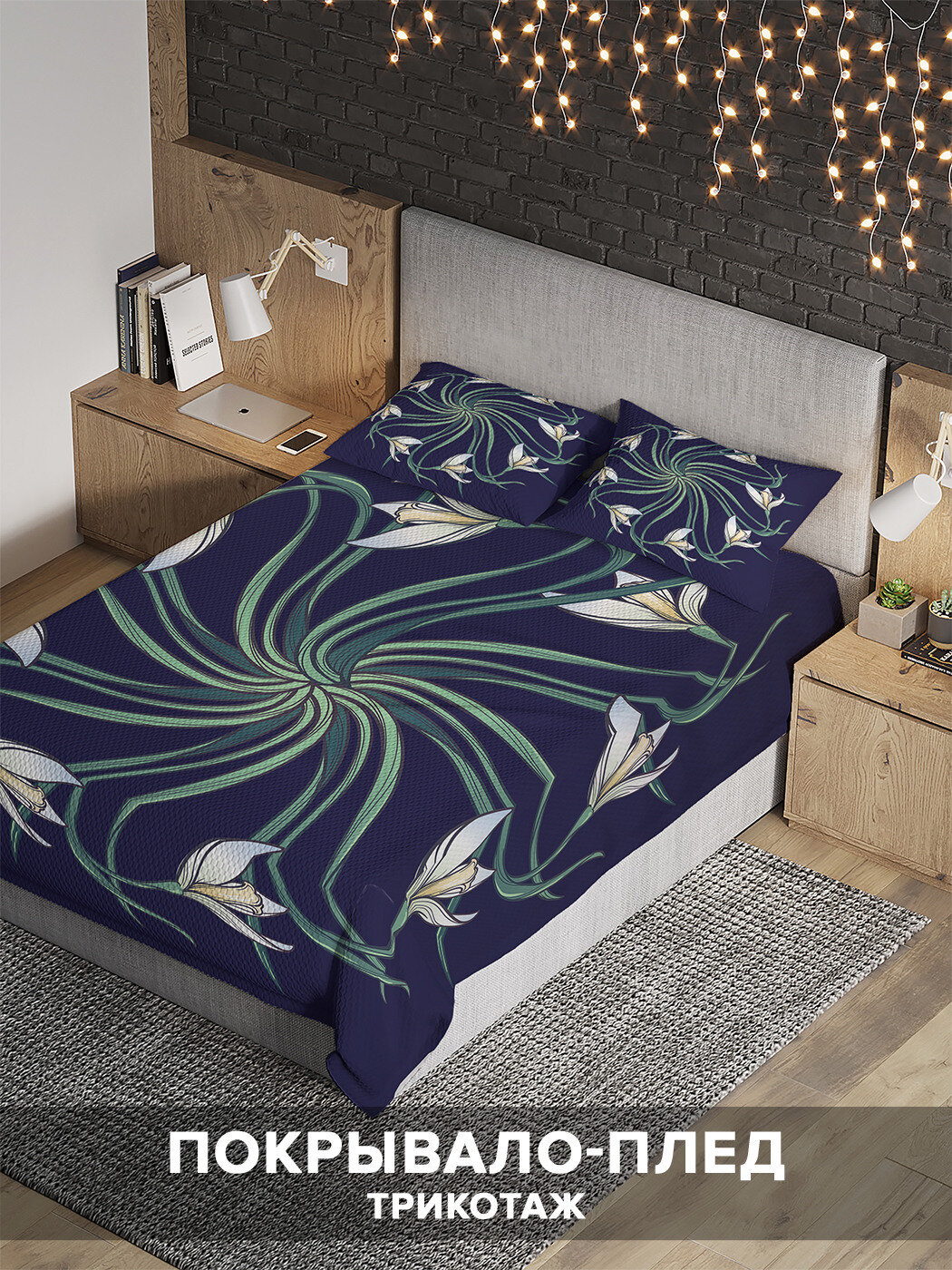 Стильное и яркое покрывало лаконично впишется в интерьер вашей спальни и отлично подойдет на 2-спальную или 1,5-спальную кровать. Изделие выполнено из мягкой трикотажной ткани с нитями синтепона, основными преимуществами таких изделий являются прочность, долговечность, простота в уходе и гипоаллергенные свойства.
