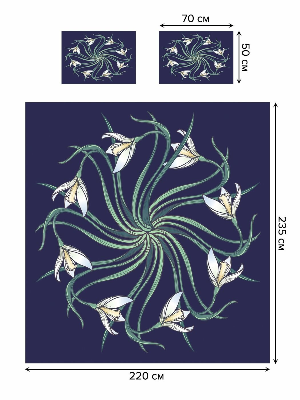 Комплектация: покрывало 220х235 см (2х-спальное), наволочки 50х70 см - 2 шт.