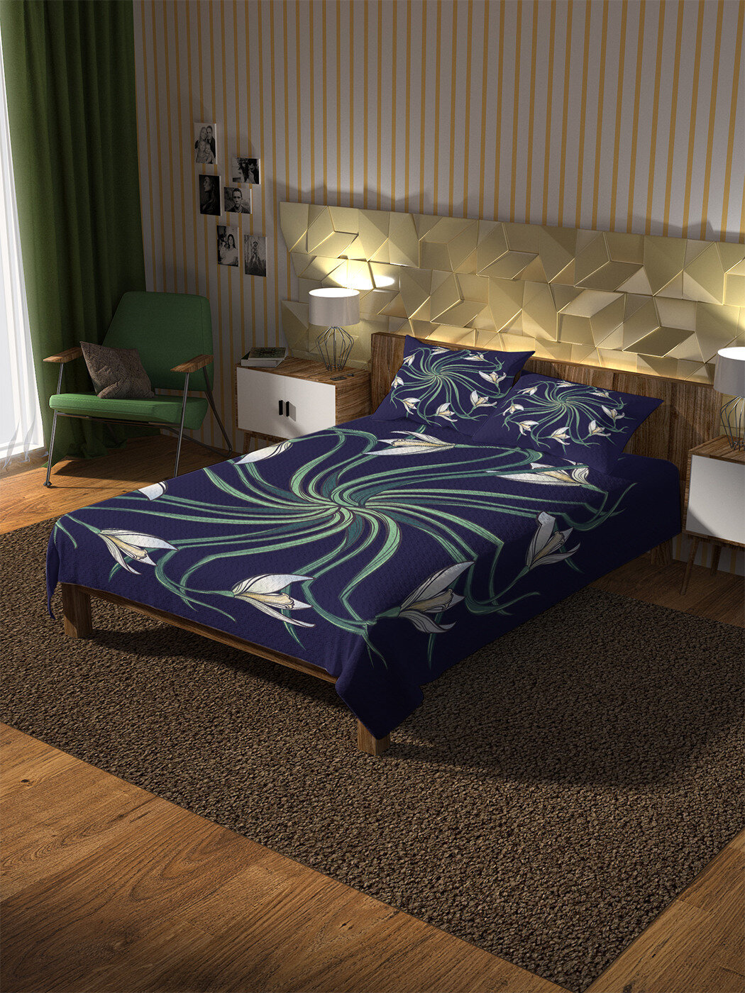 Покрывало Ambesonne не мнется, сохраняет форму и хорошо удерживает тепло, что позволяет использовать его в качестве пледа или легкого одеяла. Под брендом JoyArty Вы можете подобрать шторы в одном дизайне с покрывалом и создать единый стиль вашей спальни.