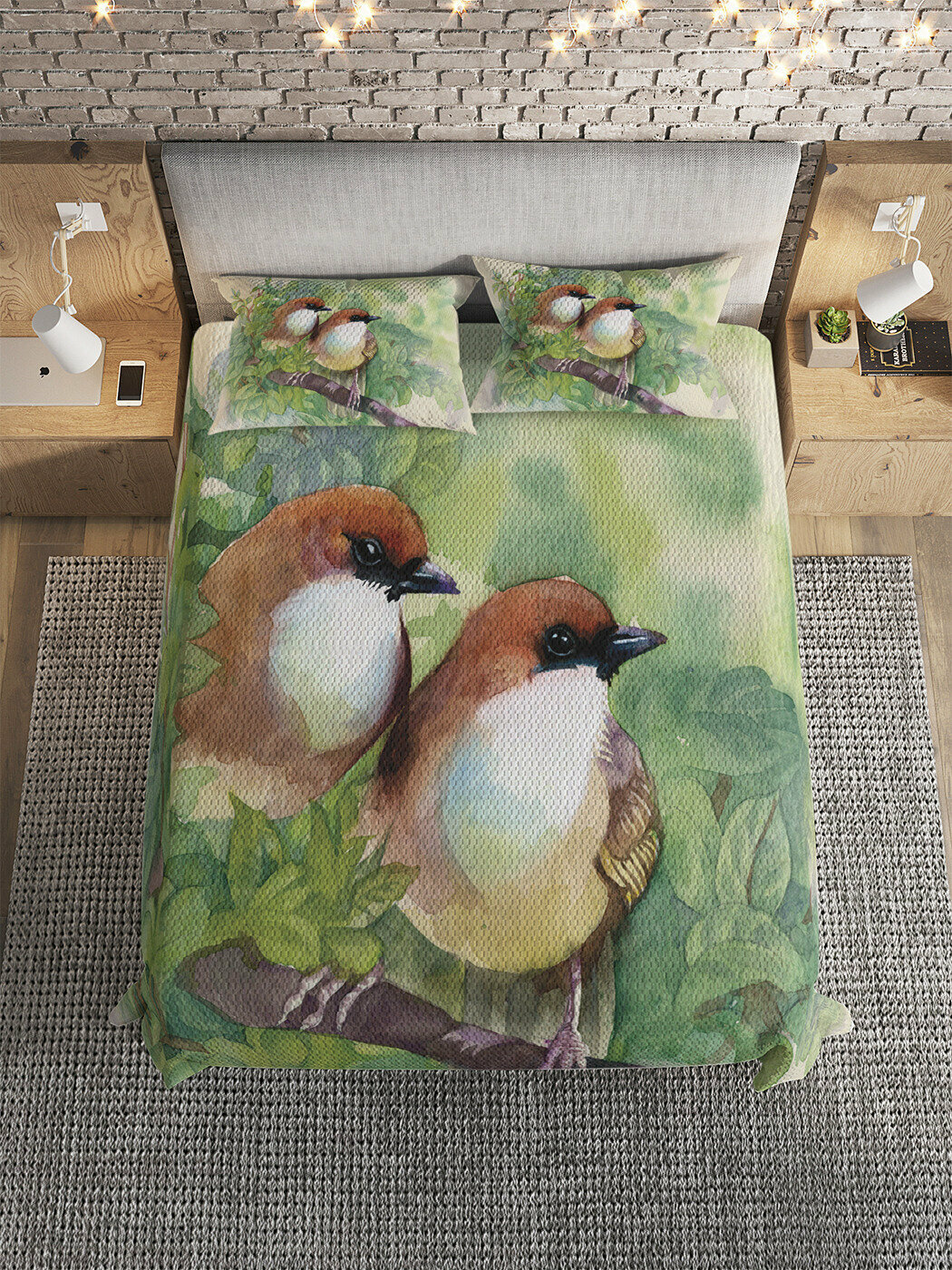 Покрывало с чехлами Ambesonne bcsl_66167 220x235 см зеленый Покрывало Птицы на ветке 220х235 и две наволочки 50x70 (размер: евростандарт)