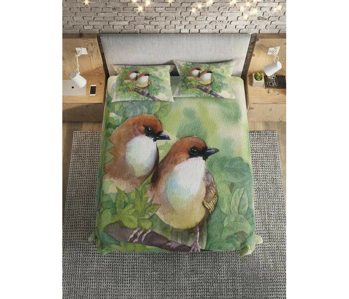 Сервис сравнения цен СкидкаГИД предлагает сравнить цены на товар «Покрывало с чехлами Ambesonne bcsl_66167 220x235 см зеленый Покрывало Птицы на ветке 220х235 и две наволочки 50x70 (размер: евростандарт)»
