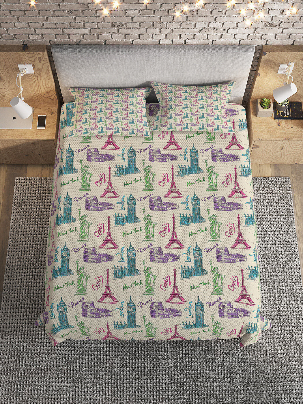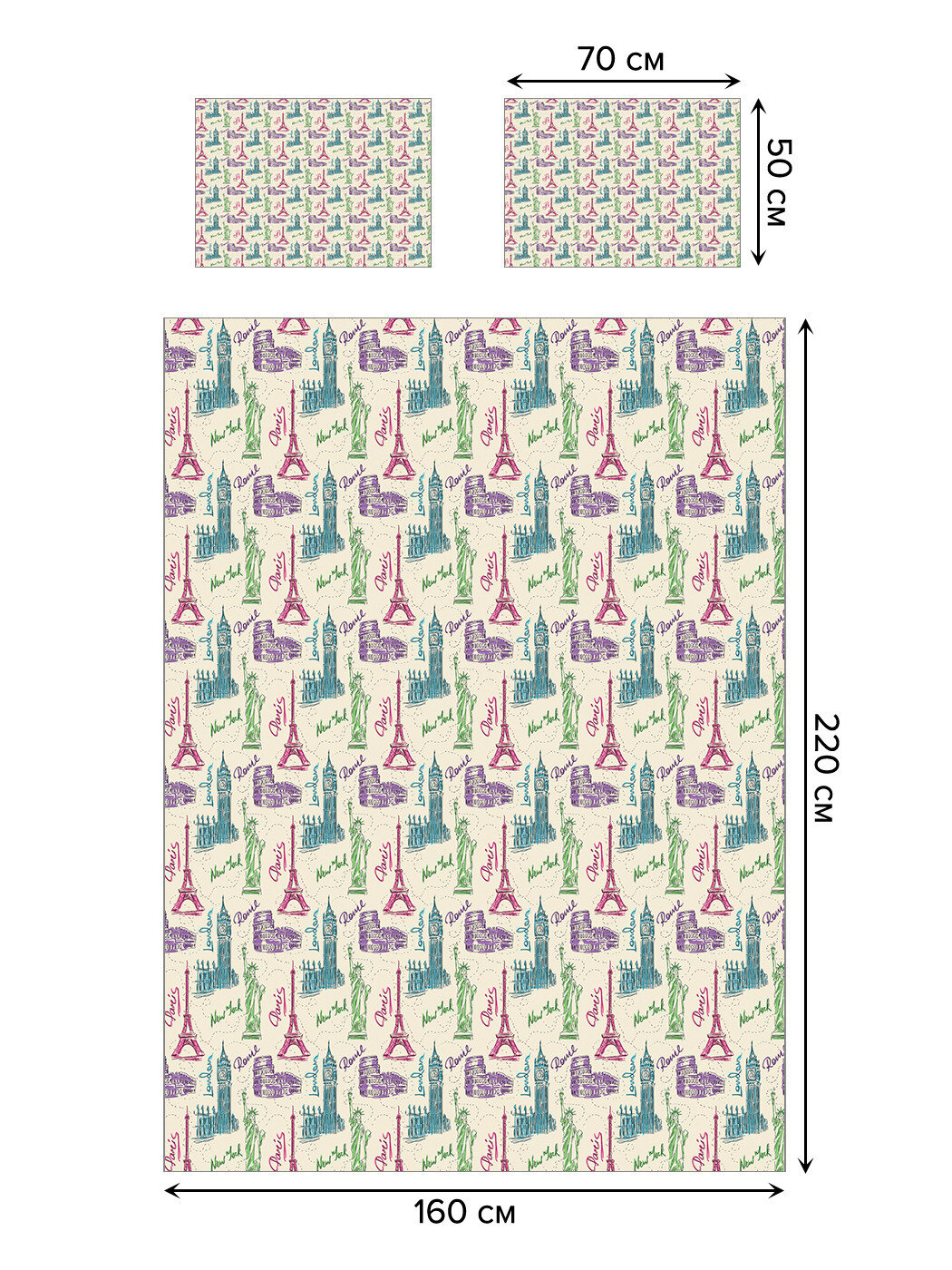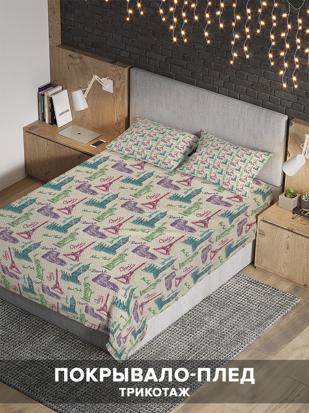 Модель: Покрывало Достопримечательности мира 160х220 и две наволочки 50x70