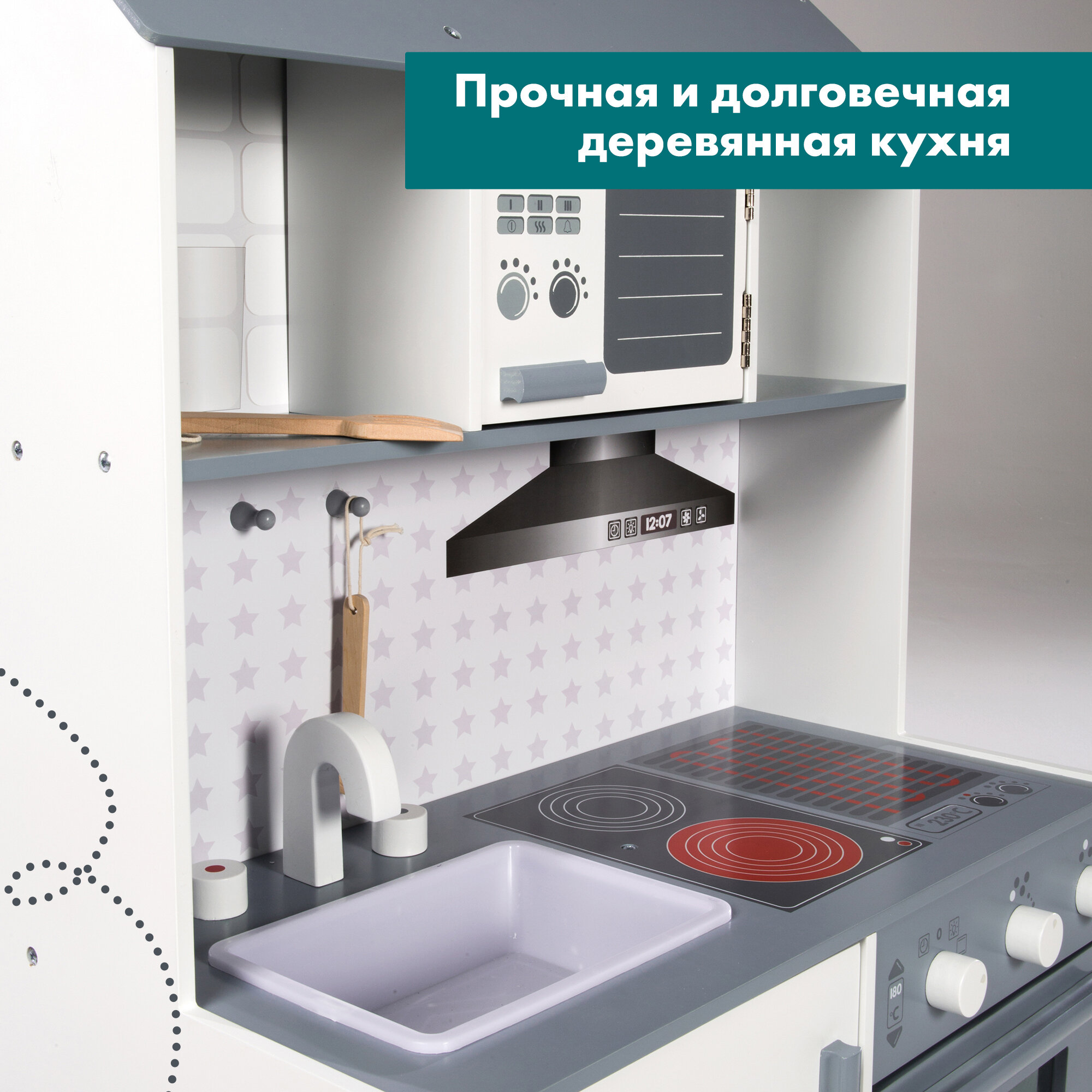 Детская игровая кухня изготовлена из МДФ, покрыта лаком. Поверхности можно протирать и за ними легко ухаживать. Все используемые материалы сертифицированы. Мини–кухня для детей разработана в соответствии с европейским стандартом безопасности игрушек EN 71-1:2014 в Германия и подходит для детей от 18 месяцев и старше.