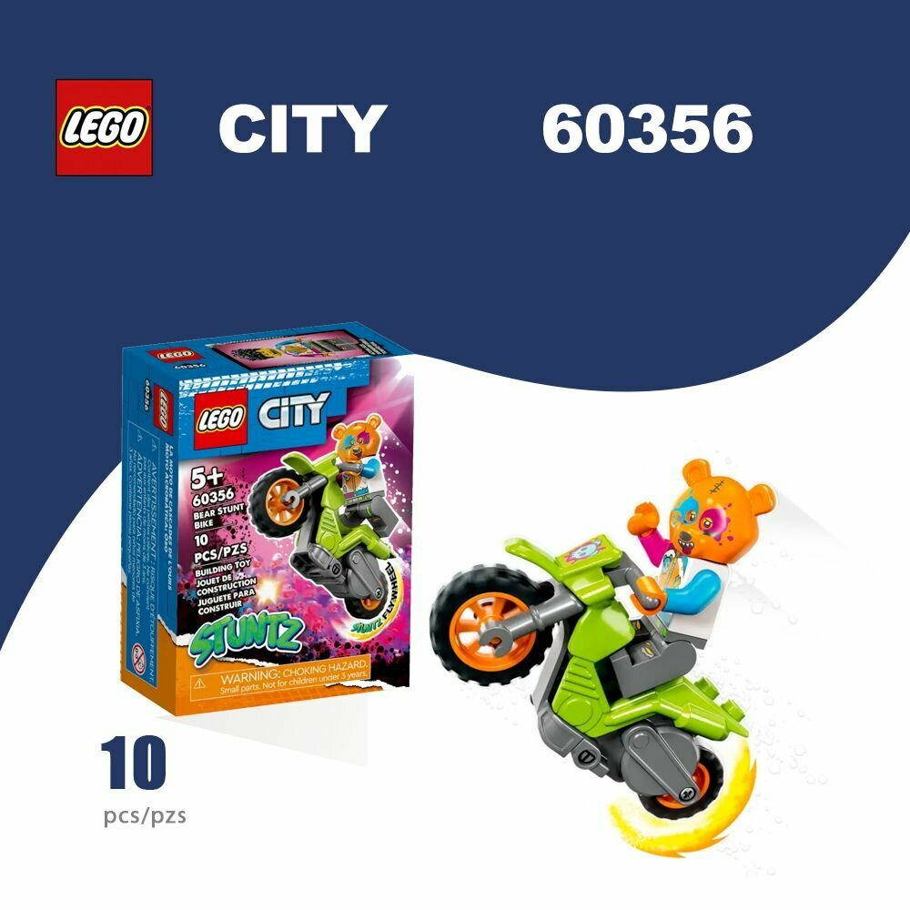 Конструктор Lego City Stuntz Трюковый мотоцикл c медведем (10 деталей)