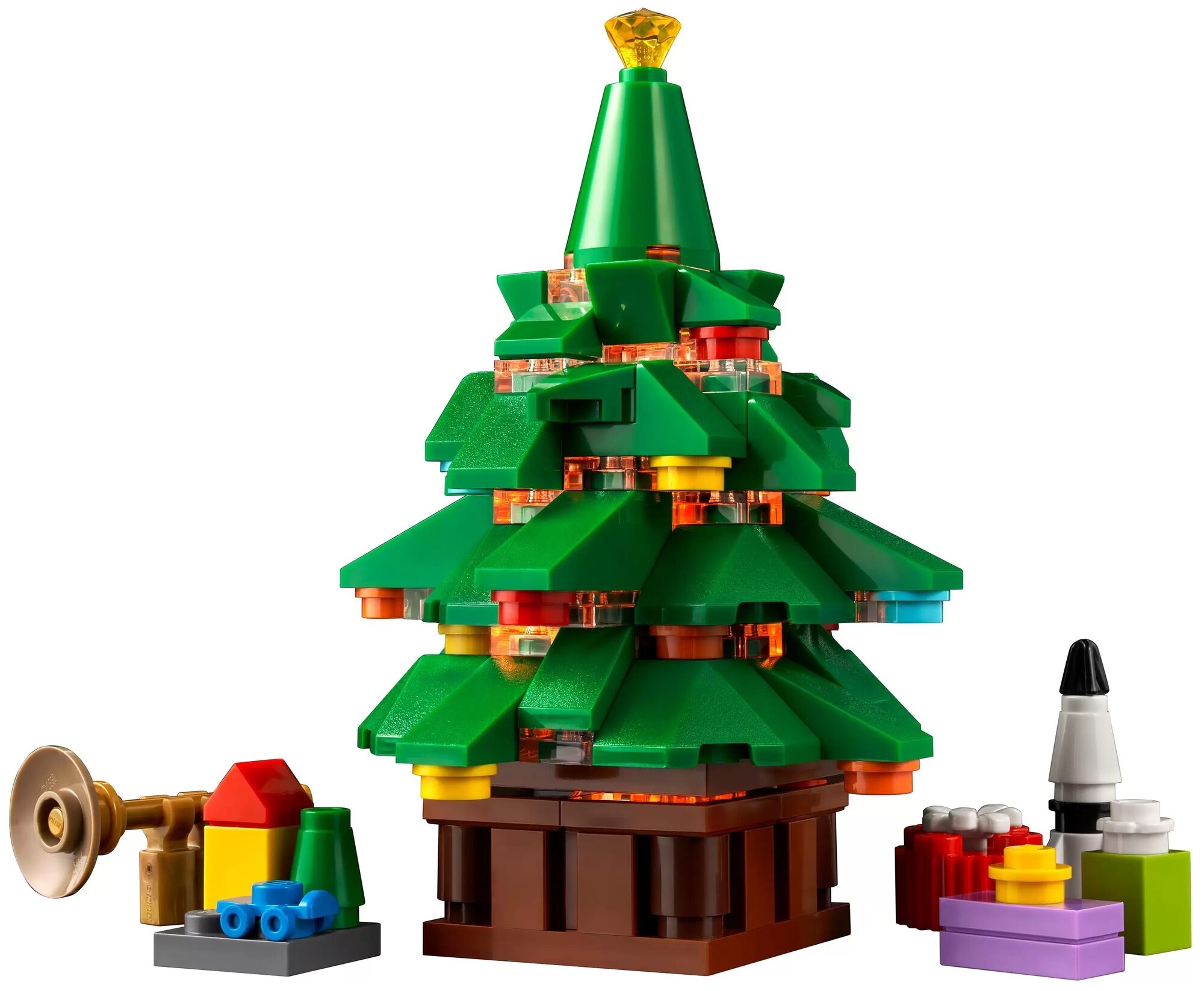 Модель замечательно выглядит со всех сторон, что делает ее идеальным украшением интерьера в сезон праздников. Посмотрите на милую кухню с симпатичным миксером из кубиков. Добавьте праздничного сияния вашей рождественской сцене. На елке есть светящийся кубик (в наборе со светящимся кубиком, с 3 мм. LED-диодом и батарейками 2xLR41 1,5V, включены в комлект), который загорается, если нажать на верхушку. Ищете лучшие идеи для подарков на Рождество?