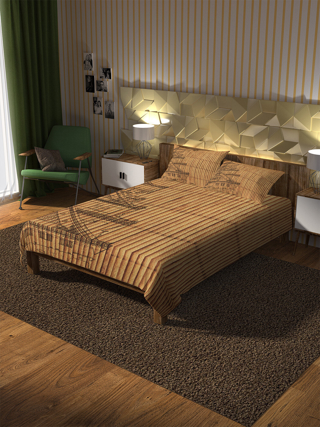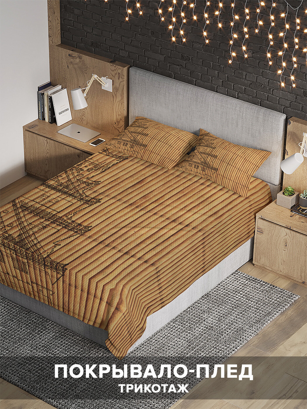 Изделие многофункционально: его можно использовать не только как покрывало на односпальную или 1,5-спальную кровать, но и в качестве пледа или легкого одеяла. Принт нанесен на ткань методом сублимированной печати, что позволяет надолго сохранить первоначальный вид изделия. Вы можете создать единый стиль вашей спальни, подобрав шторы с аналогичным принтом под брендом JoyArty.