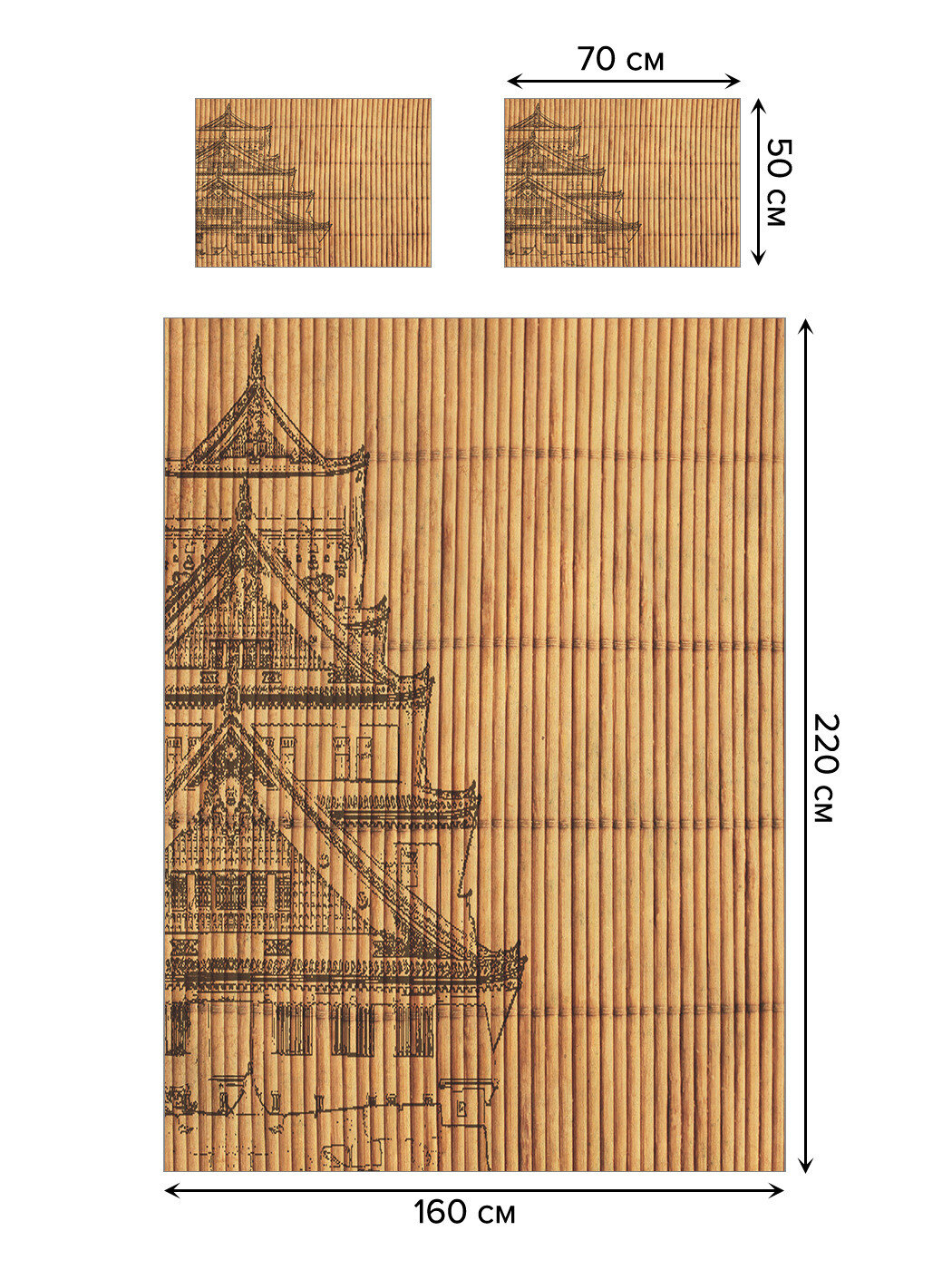 Модель: Покрывало Храм на бамбуке 160х220 и две наволочки 50x70