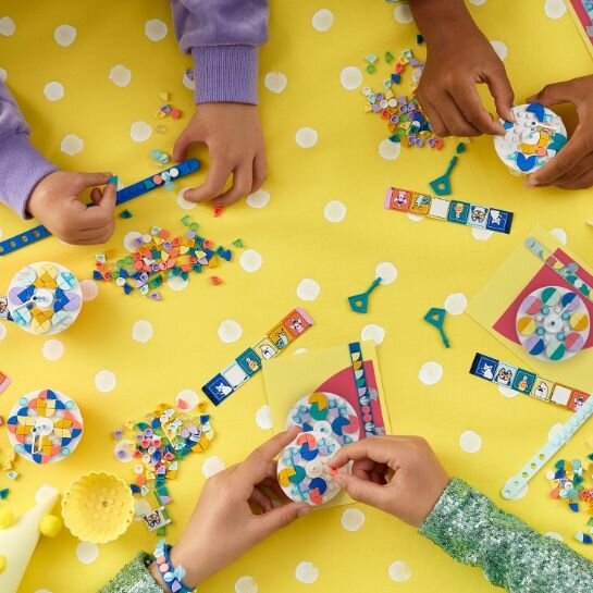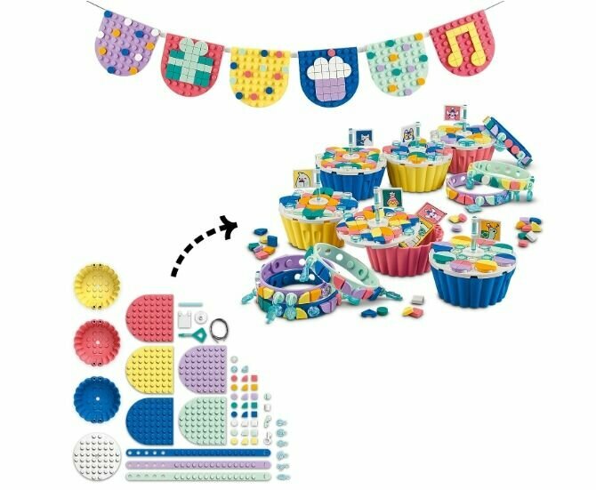 Наборы DOTS знакомят детей с радостью игр и экспериментов LEGO, когда они создают и украшают различные наборы, потому что волшебство и контроль лежат в воображении ребенка. Этот набор поможет организовать творческую групповую деятельность с забавными подарками на дом для любой вечеринки или встречи.