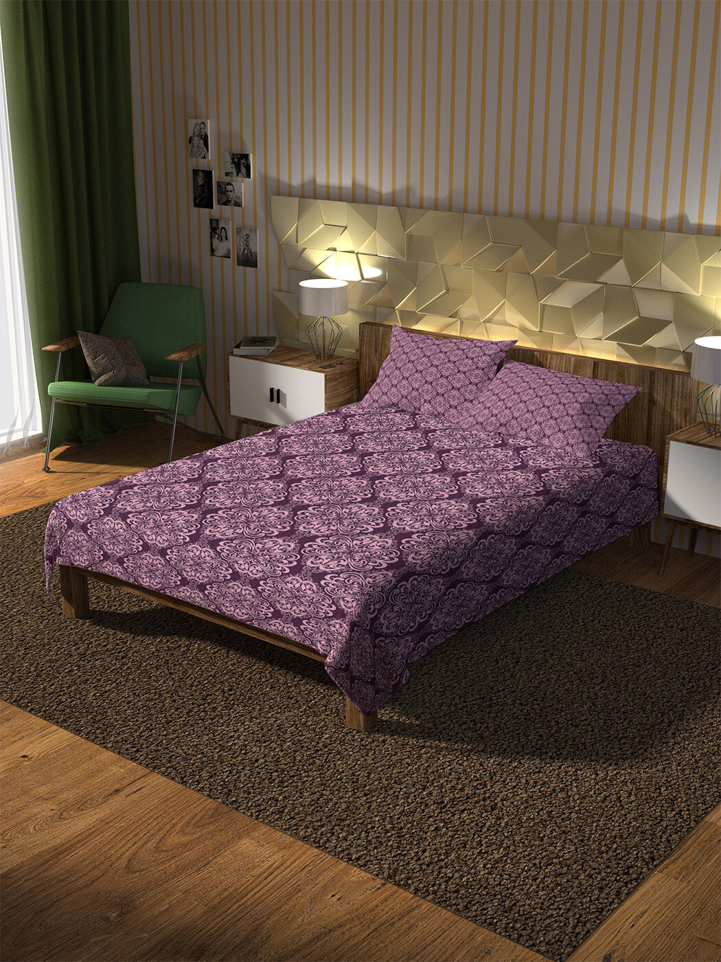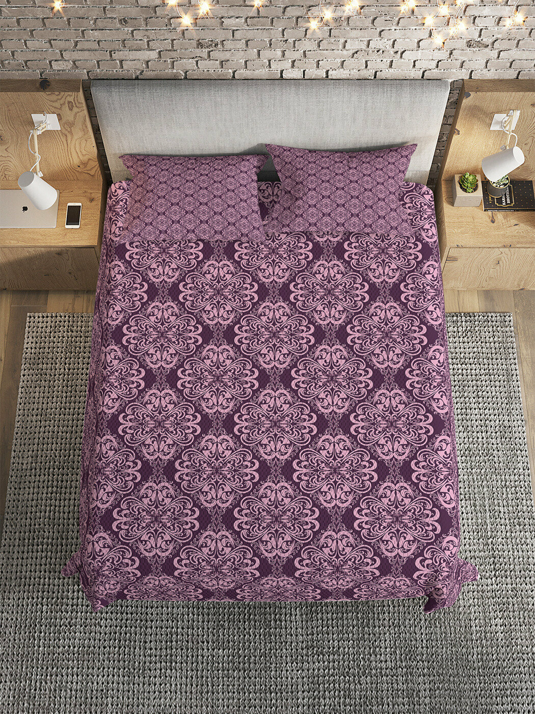 Покрывало с чехлами Ambesonne bcsl_32210 160x220 см фиолетовый Покрывало Узорчатый орнамент в стиле Барокко 160х220 и две наволочки 50x70 (размер: 1.5-спальный)