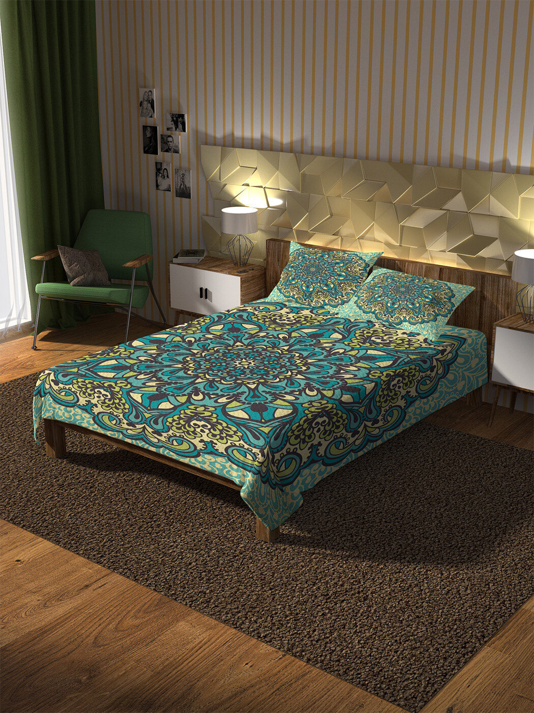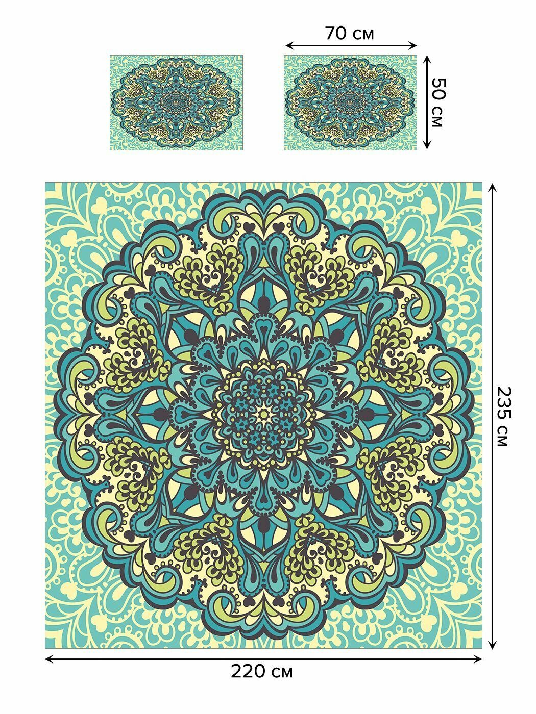 Модель: Покрывало Зеленая мандала 220х235 и две наволочки 50x70