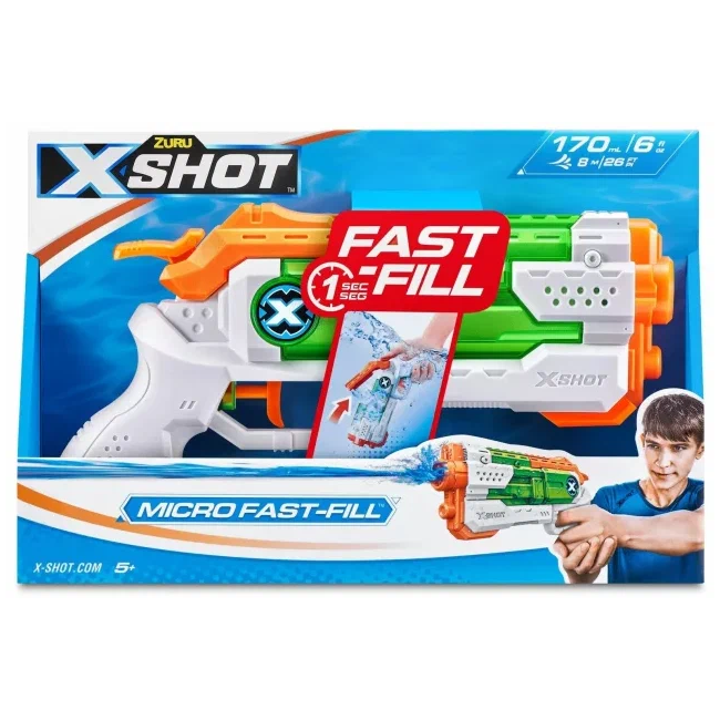 Водяные струйные установки серии X-Shot Fast-Fill — самые быстрые из когда-либо созданных водяных струйных установок. С Micro Fast-Fill вы можете заправиться всего за 1 секунду и вернуться к струе воды задолго до ваших противников.