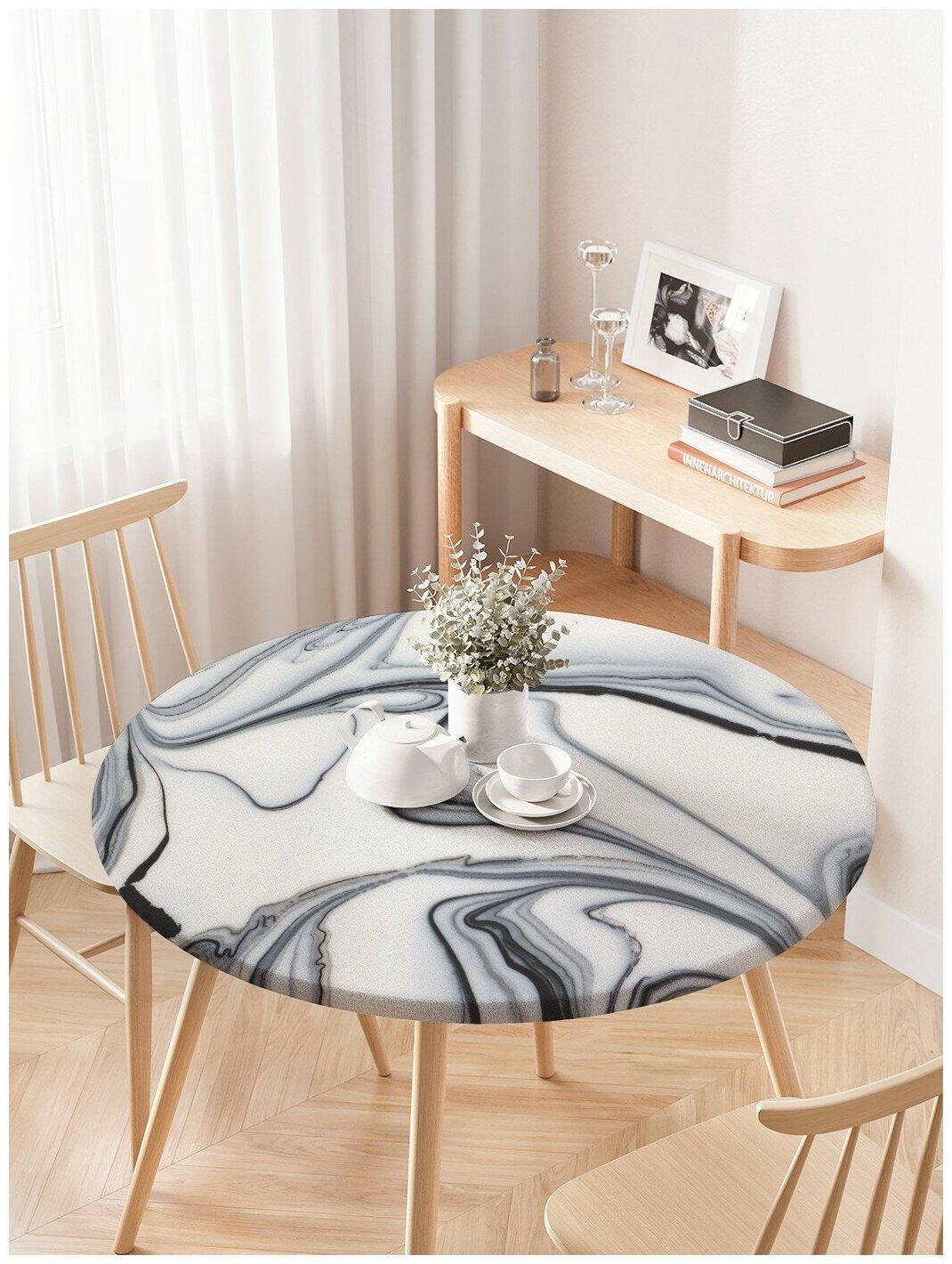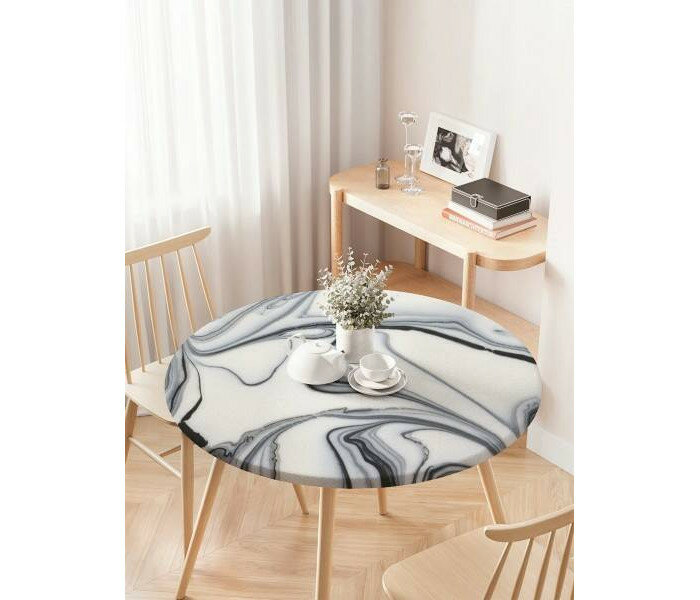 Модель: Скатерть на кухонный стол Мрамор скинали круглая на резинке от 75 до 100 см