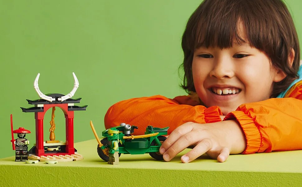 Познакомьте маленьких строителей в возрасте от 4 лет с миром NINJAGO City с помощью этого игрового набора с мотоциклом ниндзя.