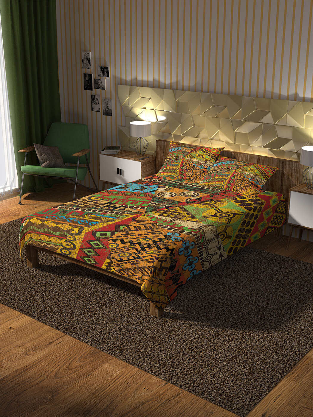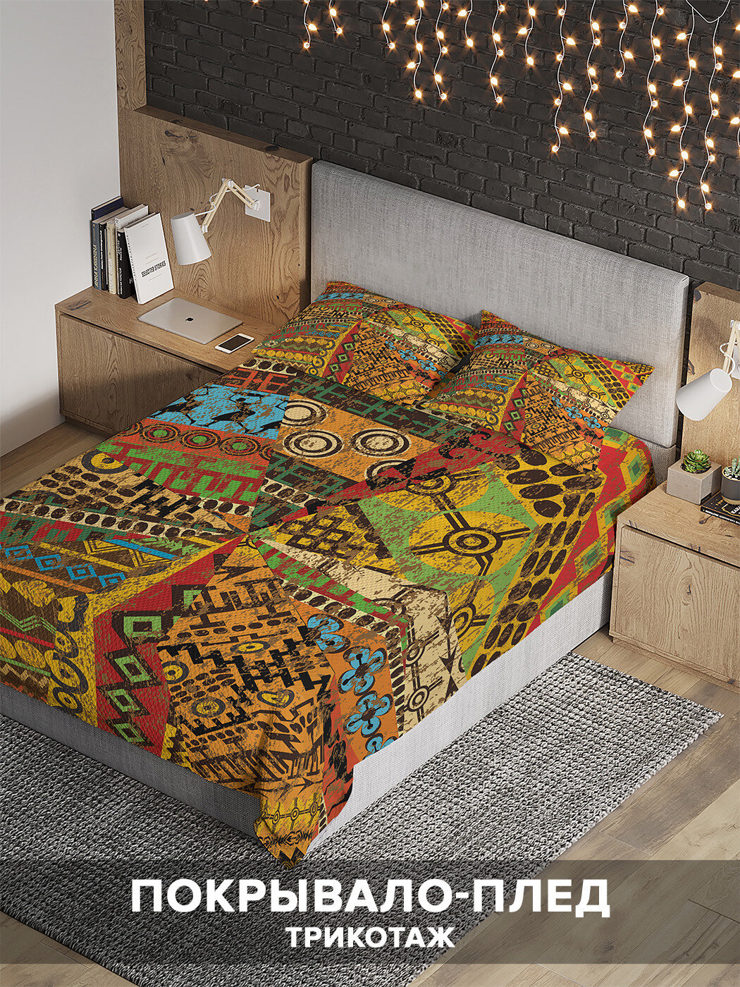 Модель: Покрывало Этнические рисунки 220х235 и две наволочки 50x70