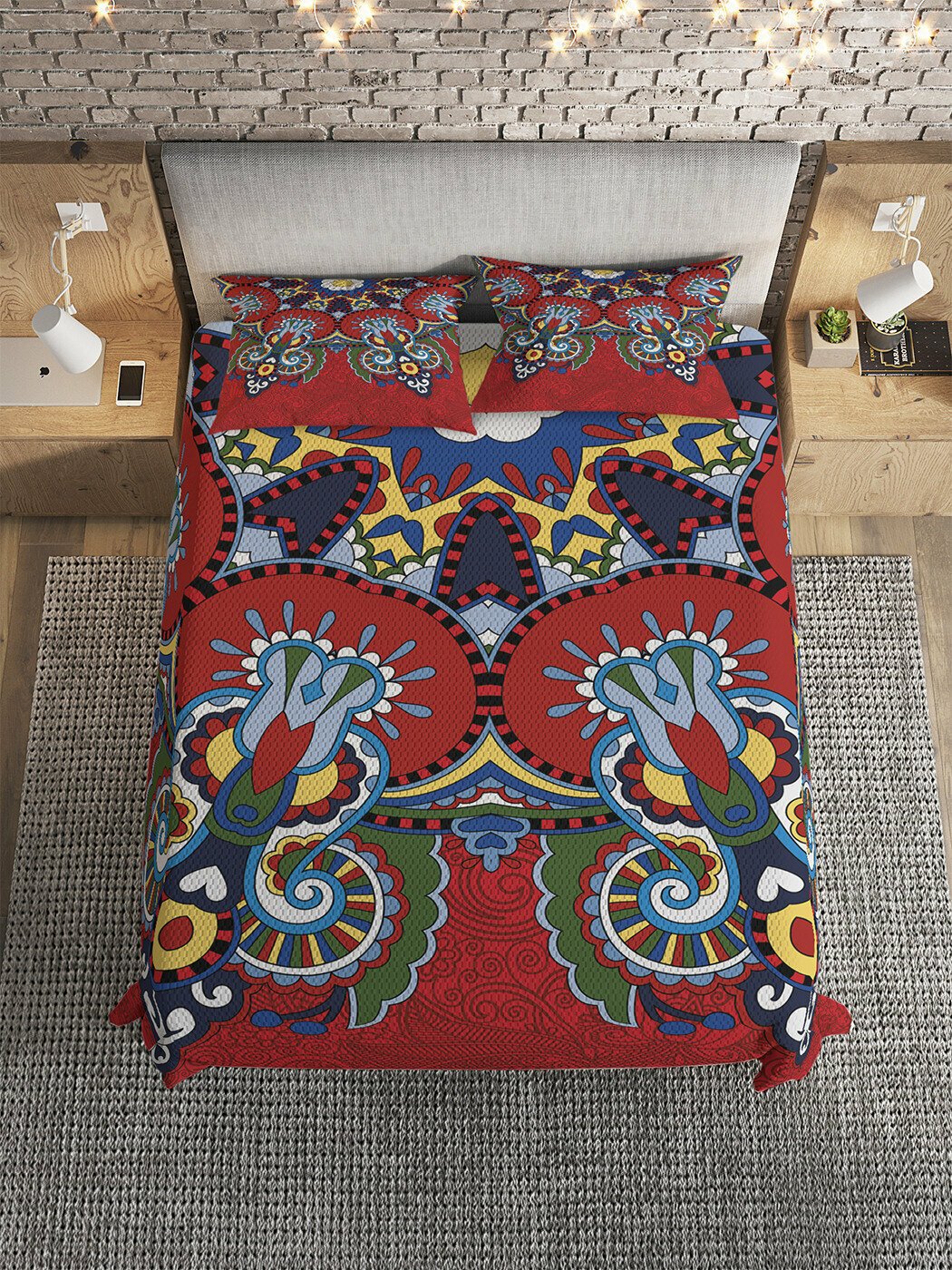 Покрывало с чехлами Ambesonne bcsl_36097 220x235 см красный Покрывало Разноцветный узор 220х235 и две наволочки 50x70 (размер: евростандарт)