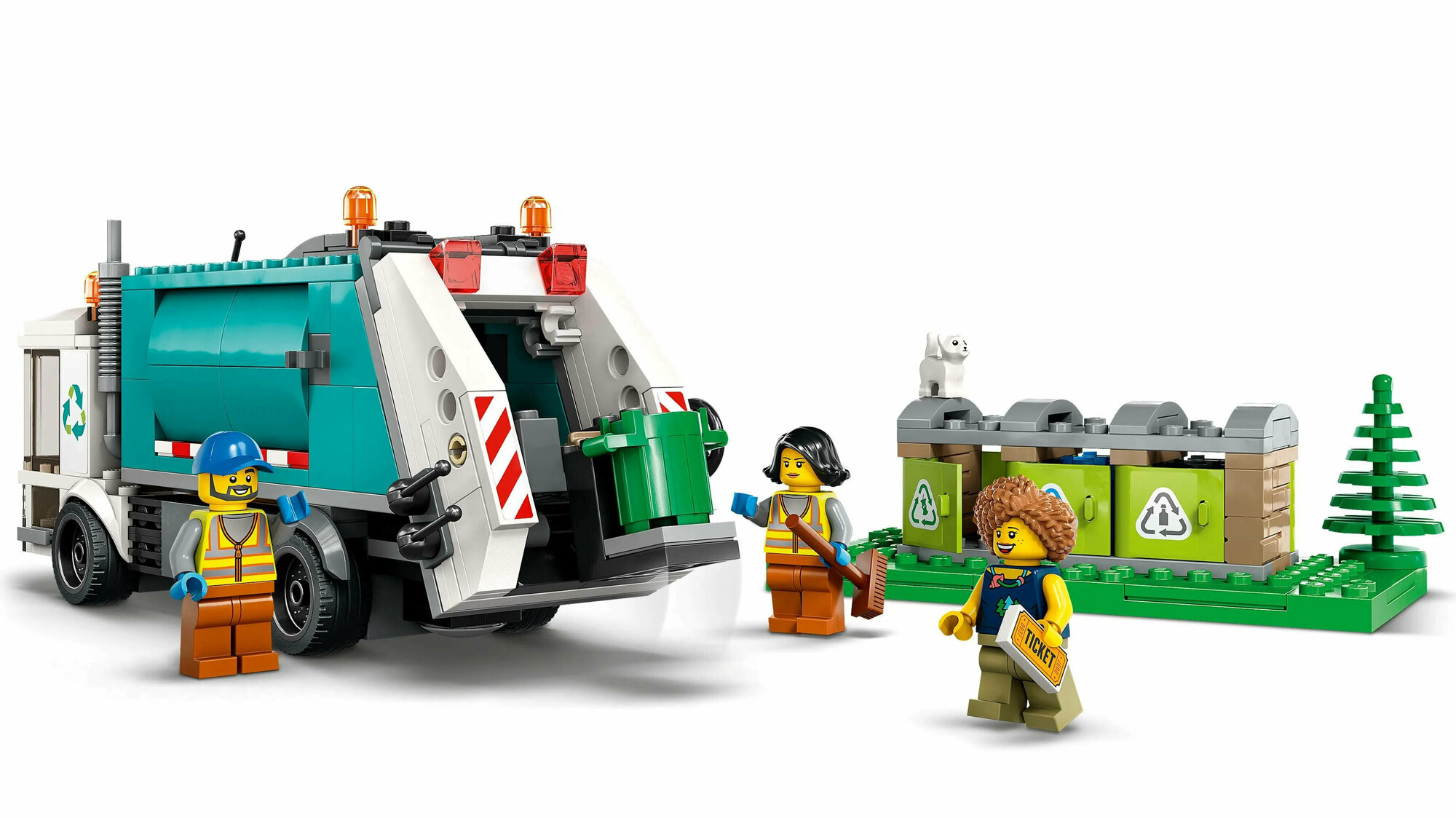 - Что в коробке? — Все, что нужно детям для сборки грузовика-утилизатора LEGO® City, а также игрушечный центр утилизации с 3 контейнерами, 3 минифигурками и фигуркой кошки.