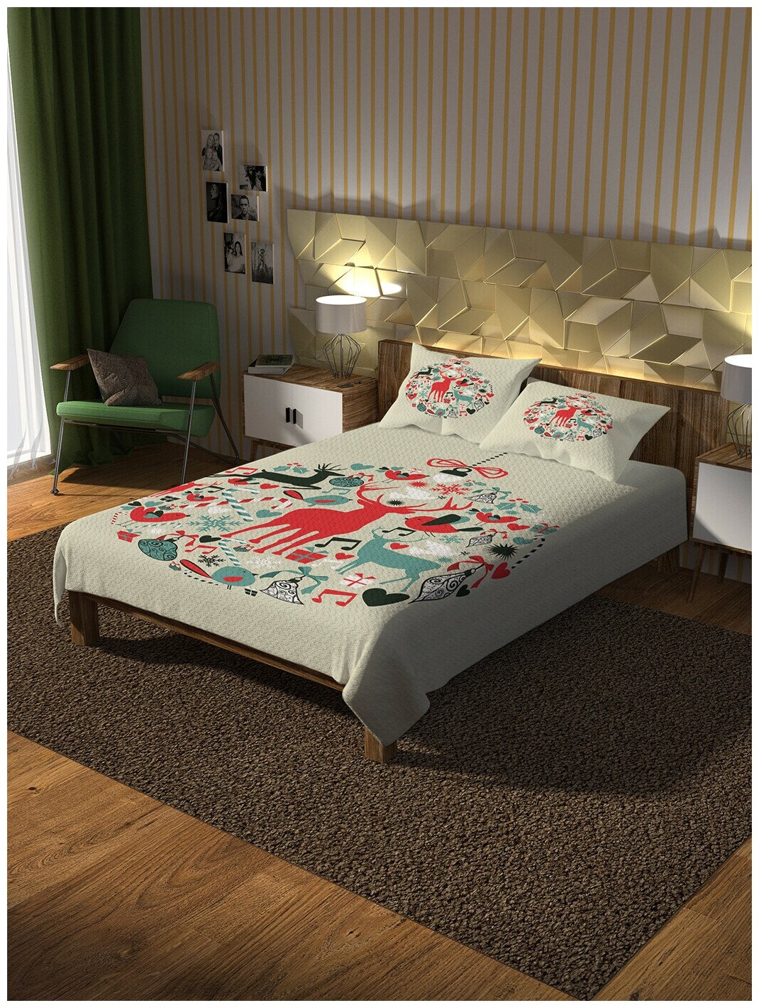 Модель: Покрывало Новогодняя игрушка 220х235 и две наволочки 50x70
