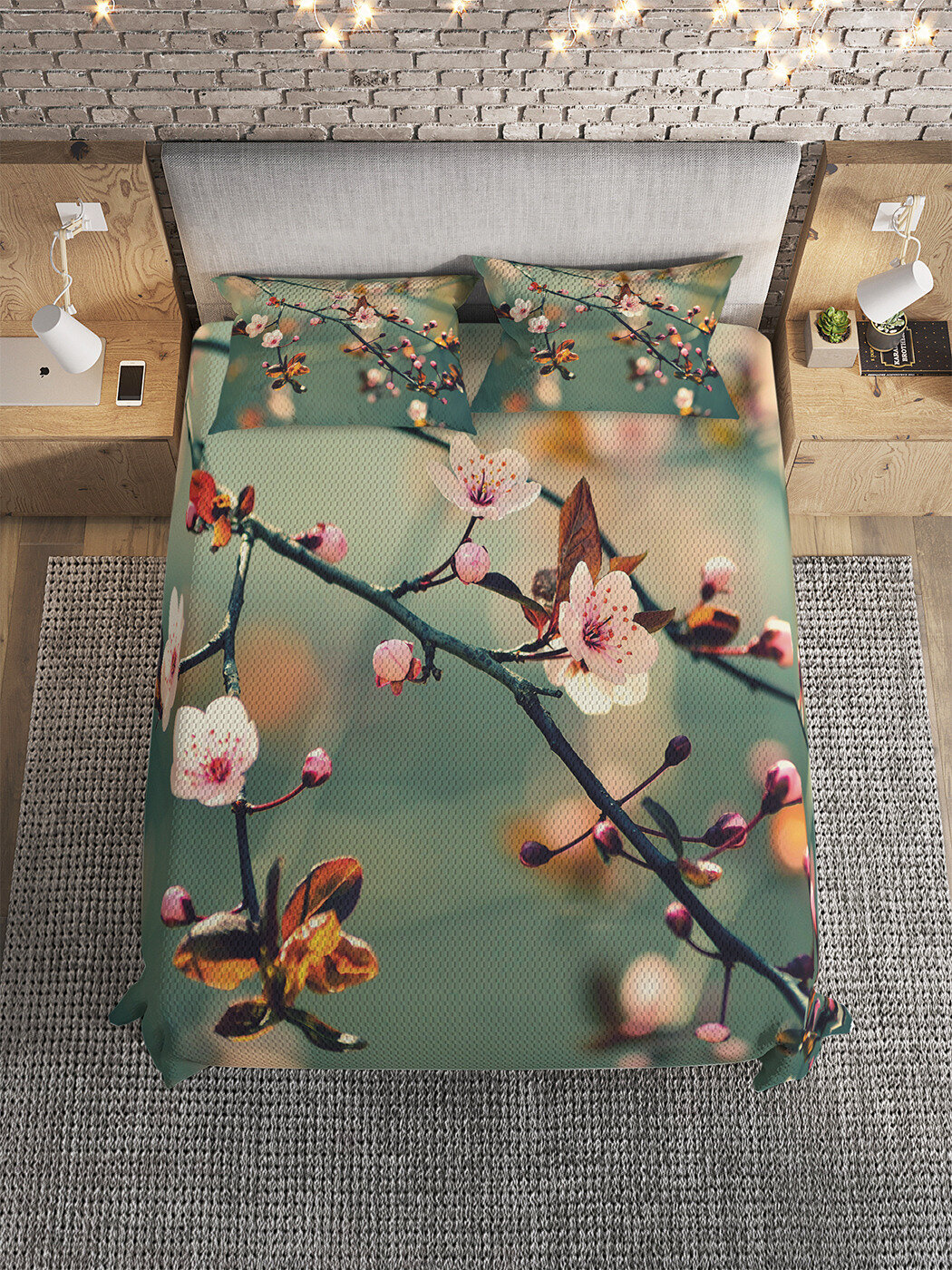 Покрывало с чехлами Ambesonne bcsl_28536 160x220 см розовый Покрывало Весенние цветы 160х220 и две наволочки 50x70 (размер: 1.5-спальный)