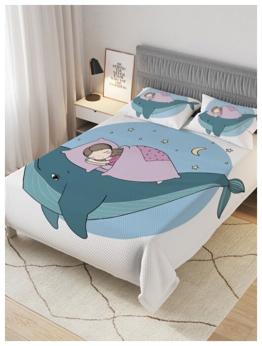 Покрывало Ambesonne 160х220 см с 2 наволочками 50x70 см Покрывало Девочка с китом 160х220 и две наволочки 50x70 (размер: 1.5-спальный)