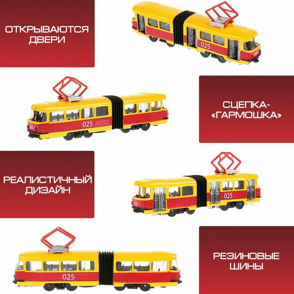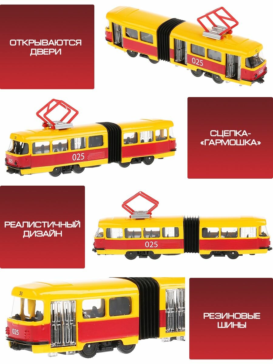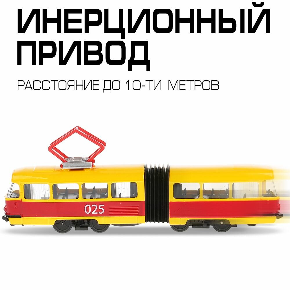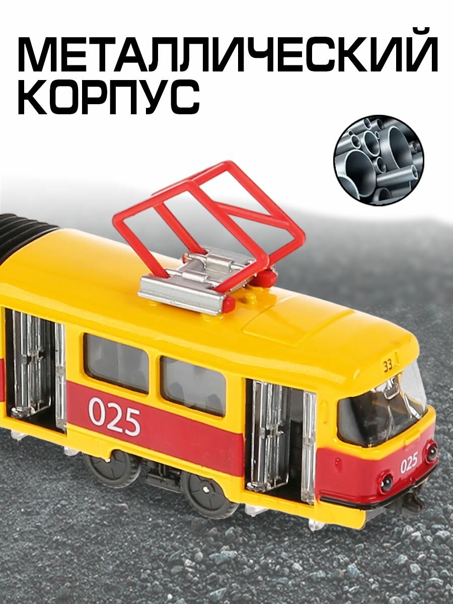 Технопарк Машина металлическая со светом и звуком Трамвай с гармошкой 19 см