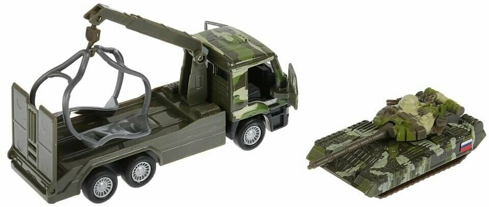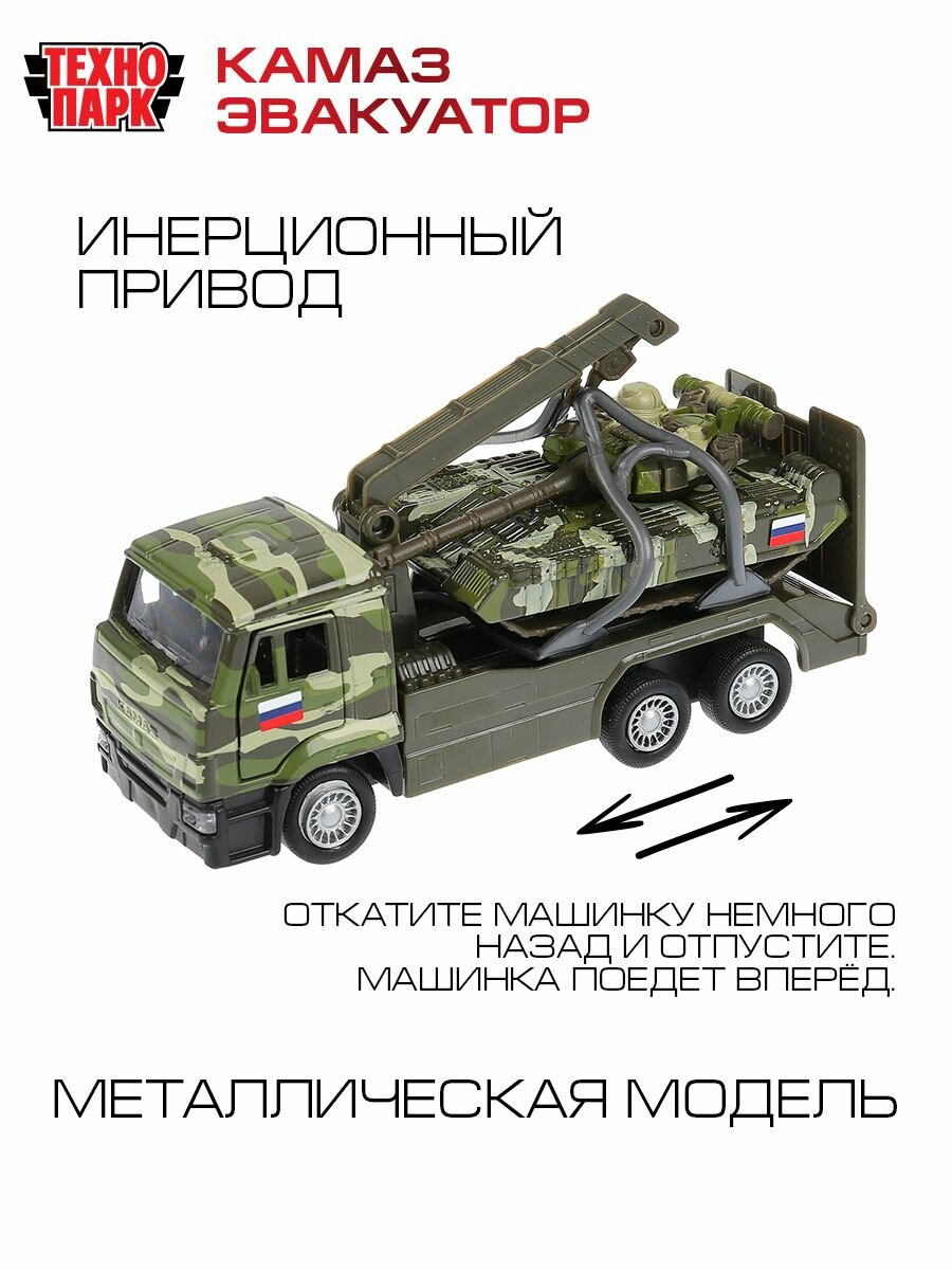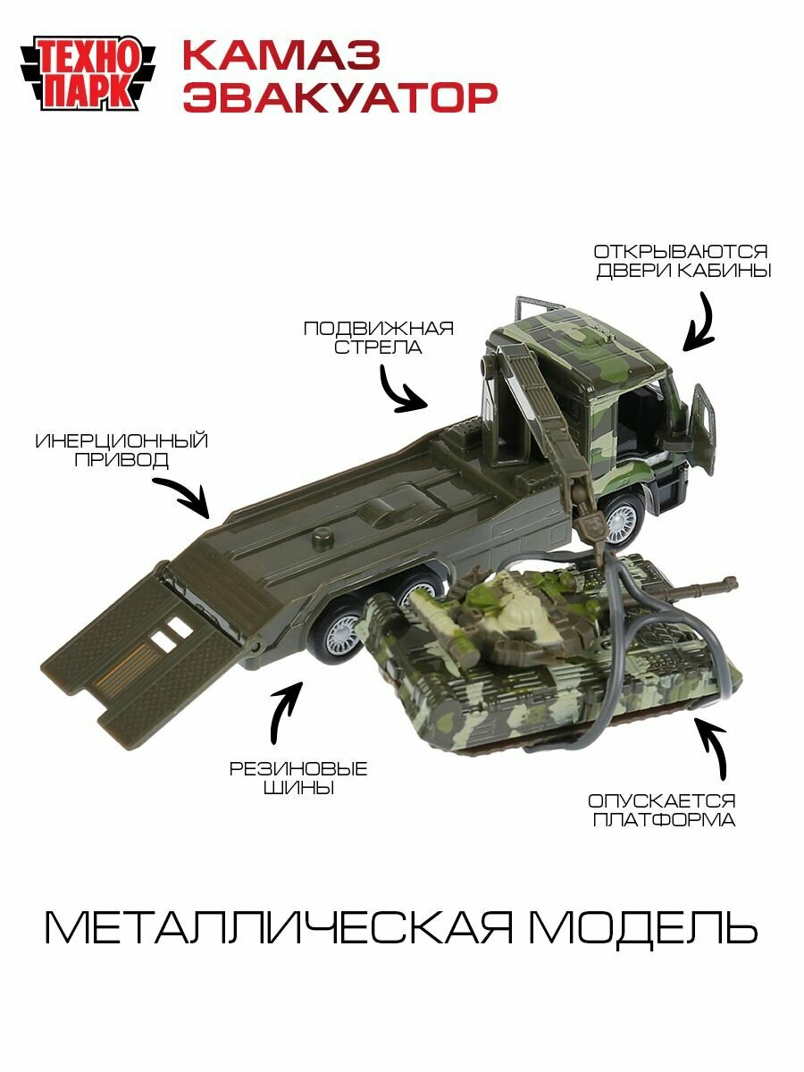 Технопарк Машина металлическая КамАЗ Эвакуатор с танком 12 см