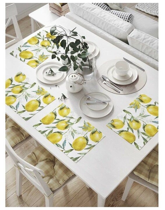 Комплект салфеток JoyArty "Ветви лимона" для сервировки стола 32х46 см 4 шт. Комплект тканевых салфеток Ветви лимона 46х32 см 4 шт.