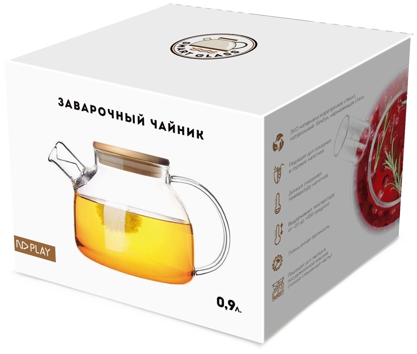 Сервис сравнения цен СкидкаГИД предлагает сравнить цены на товар «Заварочный чайник ND Play в подарочной упаковке 900 мл стекло Заварочный чайник с бамбуковой крышкой в подарочной упаковке стекло 900 мл»