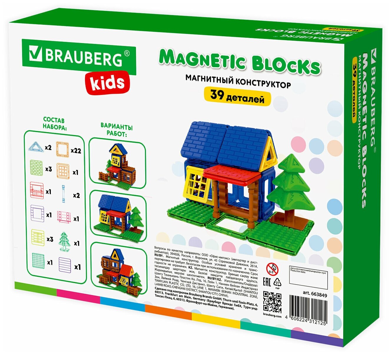 Конструктор Brauberg магнитный Magnetic Build Blocks-39 Построй дом (39 деталей)