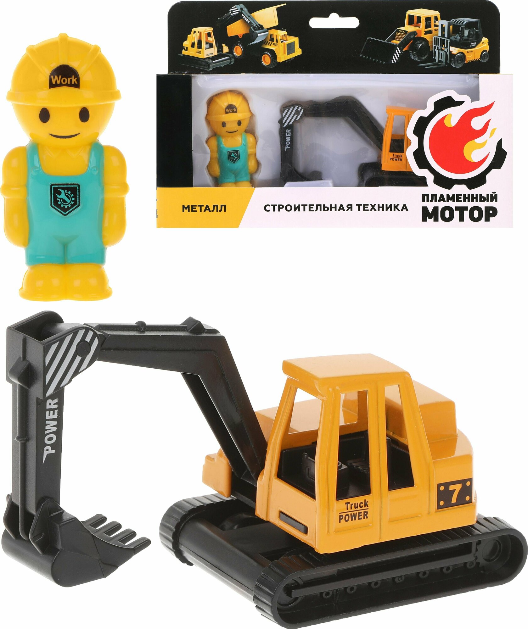 Пламенный мотор Игровой набор Экскаватор с фигуркой строителя