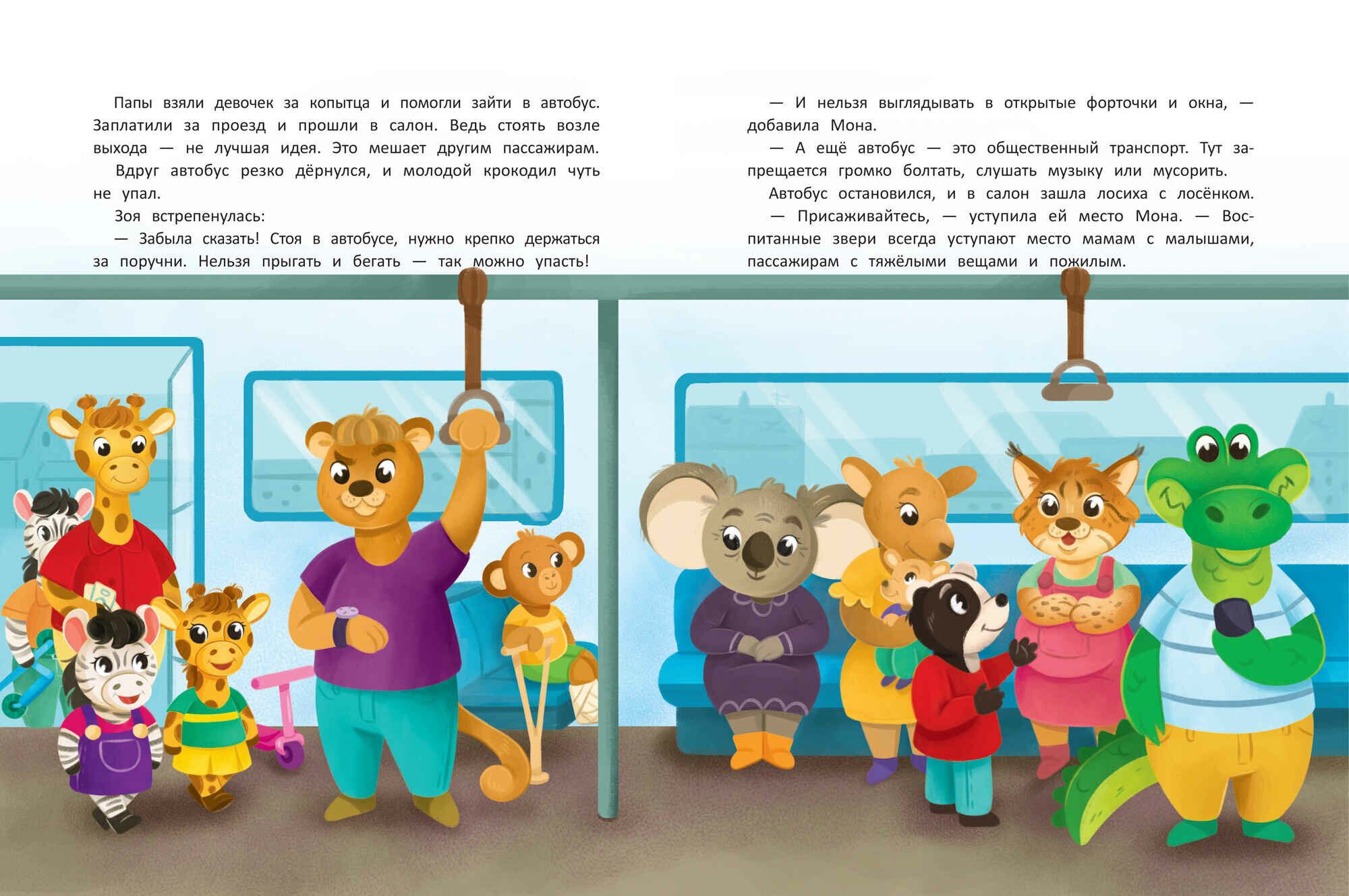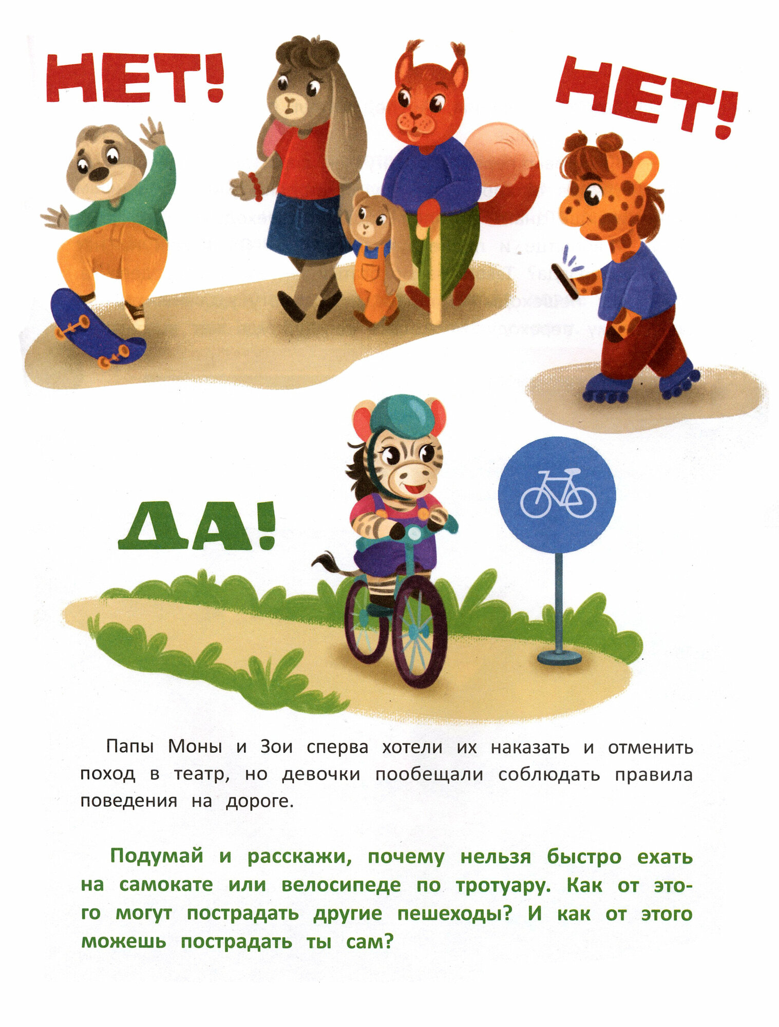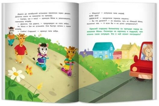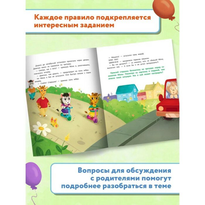 Книга "Правила дорожного движения" расскажет о безопасности на дороге, правилах поведения в автобусах, в метро и на остановках, о том, как переходить дорогу и какие правила нужно соблюдать при езде на велосипеде, роликах или самокате.
