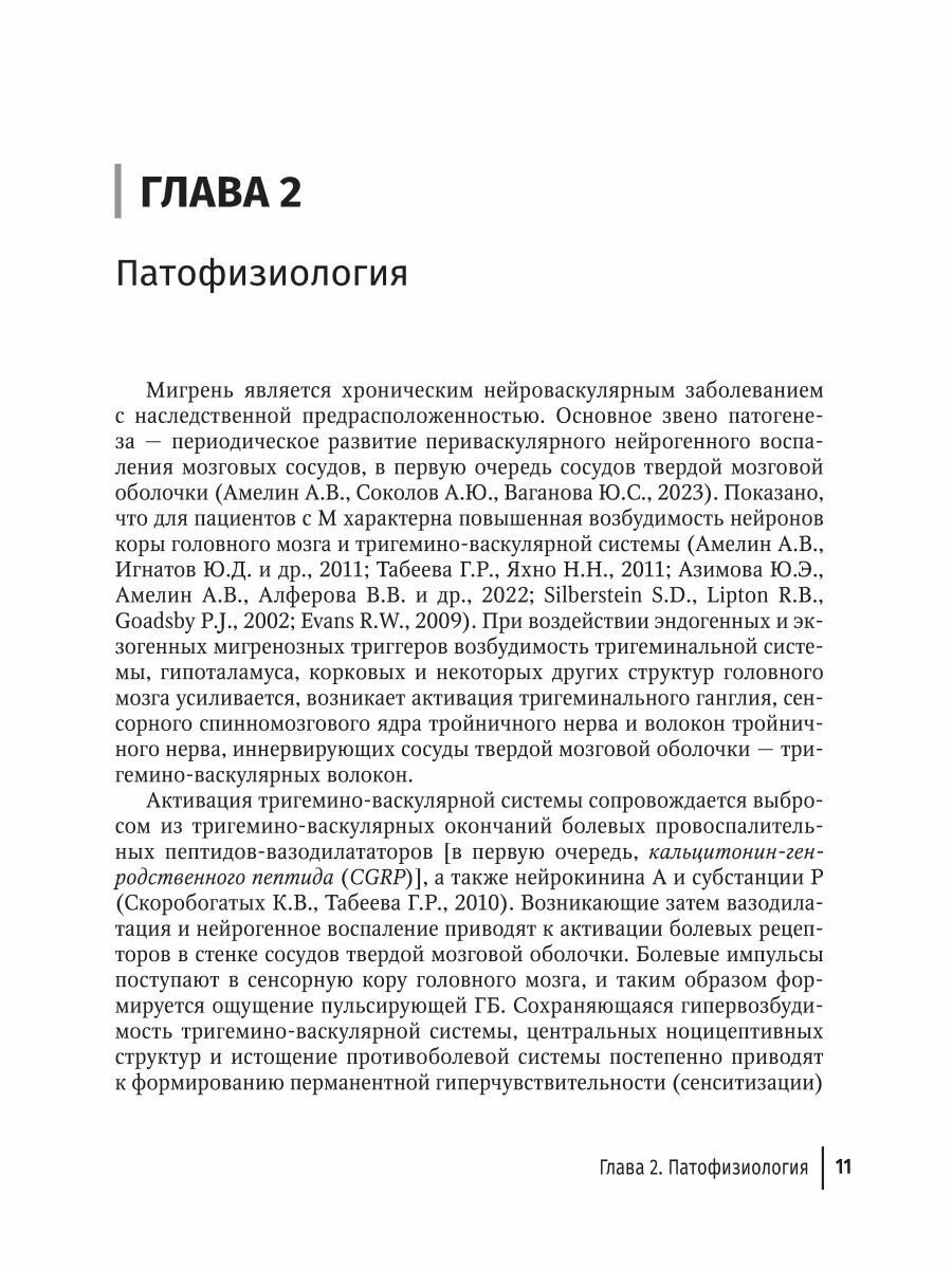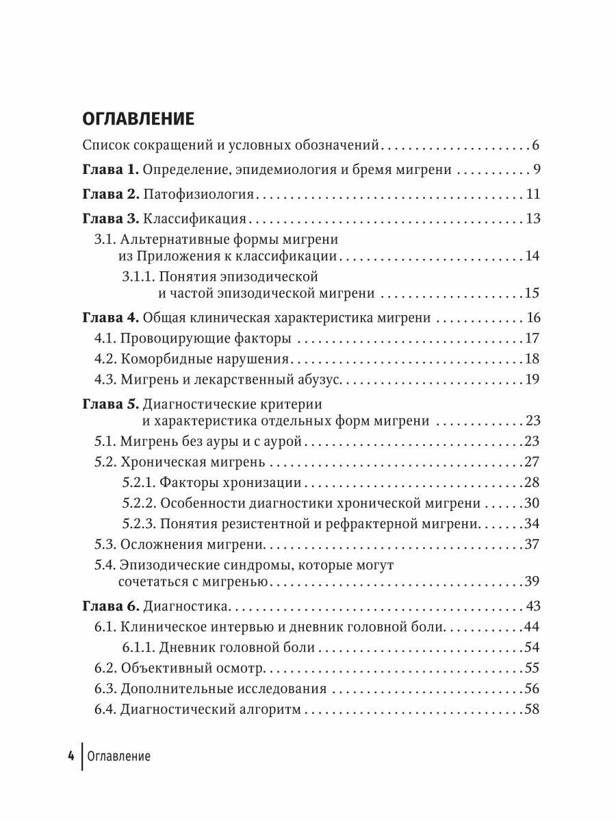 Данное краткое руководство посвящено мигрени - одной из самых частых и дезадаптирующих форм первичных цефалгий. Наряду с классификацией и принципами диагностики в нем отражены диагностические критерии различных подтипов мигрени, сведения о коморбидных нарушениях и дифференциальной диагностике с другими цефалгиями. Представлено клиническое интервью пациента, разработанное автором. Отдельное внимание уделено хронической мигрени и факторам, приводящим к ее хронизации: стрессу, депрессии и лекарственному абузусу. Обсуждаются подходы к эффективному ведению пациентов (поведенческая терапия, купирование приступов и профилактическое лечение). Специальный акцент сделан на преимуществах таргетной терапии Анти-CGRP моноклональными антителами. Книга содержит клинические примеры и полезные практические сведения, основанные на 30-летнем опыте автора в области диагностики и лечения головной боли.