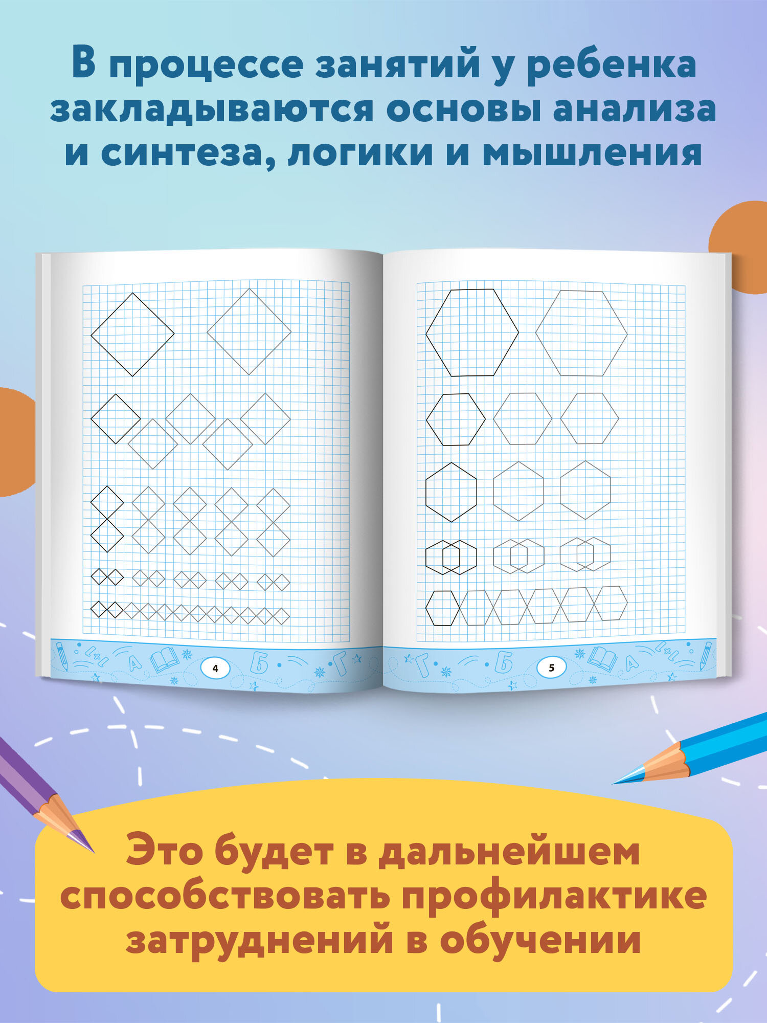 Выполняя задания данной книги, ребенок сможет приобрести навыки пространственного представления, которые включают в себя определение формы, величины, местоположения и перемещения предметов относительно друг друга и собственного тела. Это сыграет значительную роль во взаимодействии ребенка с окружающей средой и в его успешном развитии. В процессе занятия у ребенка закладываются основы анализа и синтеза, логики и мышления, что будет в дальнейшем способствовать профилактике затруднений в обучении. Все это поможет избежать распространенных ошибок, таких как "перевертывание" изображения букв и цифр, неверное написание графически сходных букв и цифр.