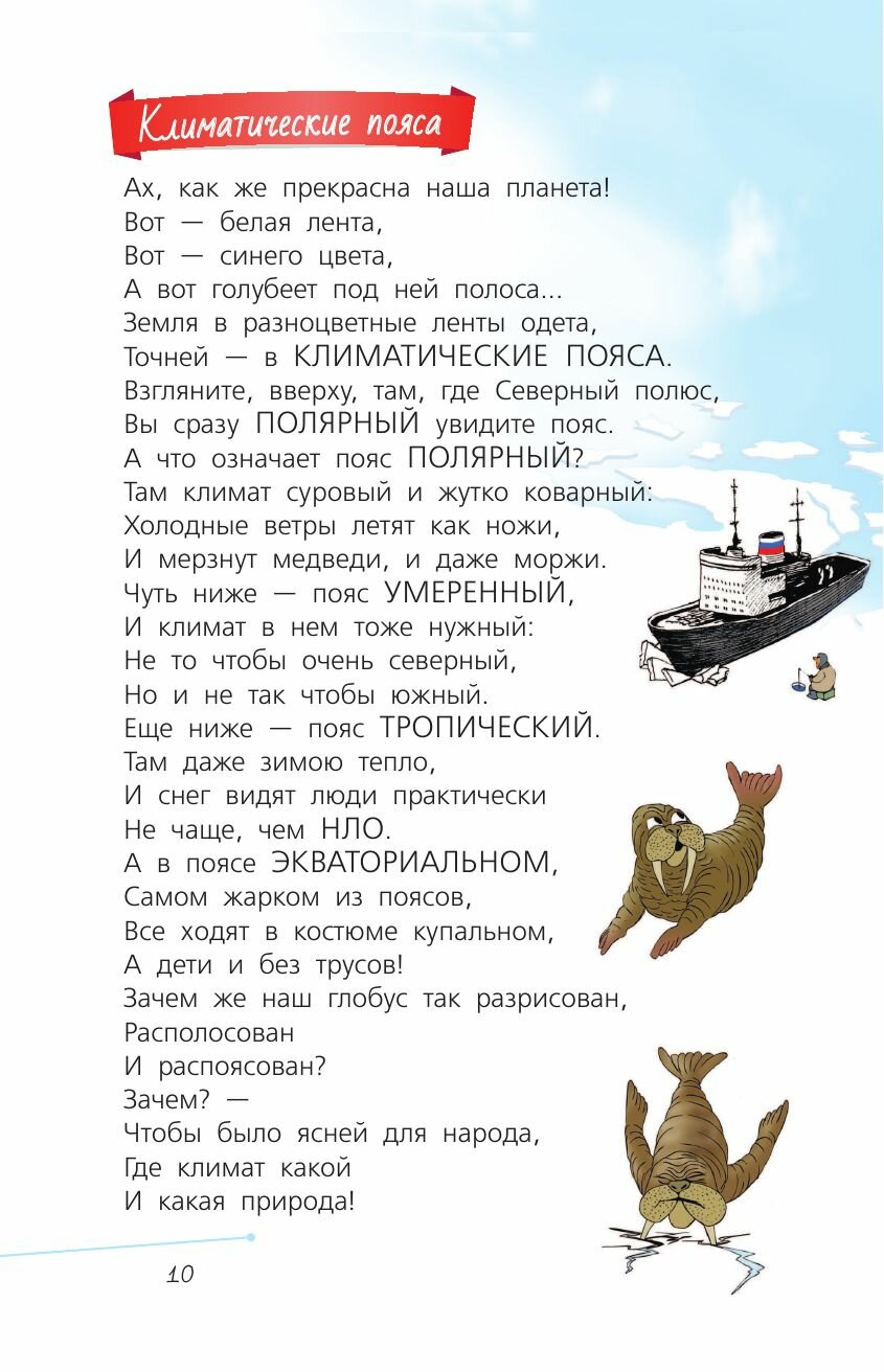 Если ты не любишь школьный предмет "География", срочно открывай эту книгу и читай веселый учебник замечательного поэта Андрея Усачева. Все страны мира предстанут перед тобой в самом "приглядном" виде и откроют свои потрясающие воображение секреты. Уверены, что ты быстро все запомнишь и сразишь в школе учительницу географии своими знаниями! Ждем от тебя "пятерок"!