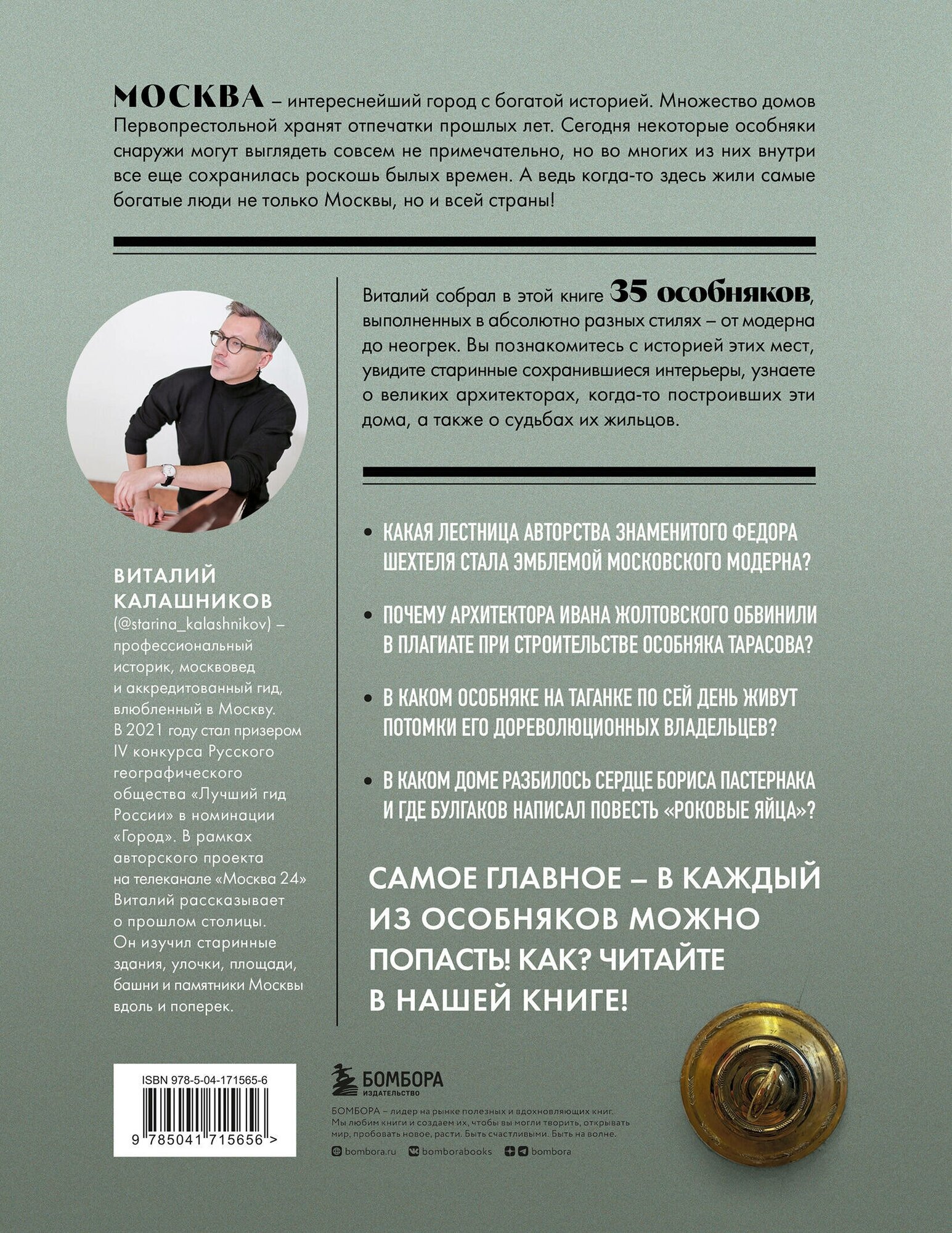 Автор книги Виталий Калашников (@starina_kalashnikov) - профессиональный историк, журналист канала "Москва 24", москвовед и аккредитованный гид, влюбленный в столицу. В 2021 году стал призером IV конкурса Русского Географического общества "Лучший гид России" в номинации "Город". Это рассказ о тридцати пяти московских особняках (в которые можно попасть любому желающему!) в историях одних из самых богатых людей своей эпохи, которые в них когда-то жили и для которых эти роскошные дома и строили. Кто из великих архитекторов и в каком стиле строил тот или иной особняк? Какие материалы были использованы? Сохранились ли дома в своем первозданном виде до наших дней? И что находится в них сейчас? На эти и многие другие вопросы вы найдете ответы в нашей книге! А эксклюзивные авторские снимки интерьеров и экстерьеров помогут передать атмосферу и дух того времени!