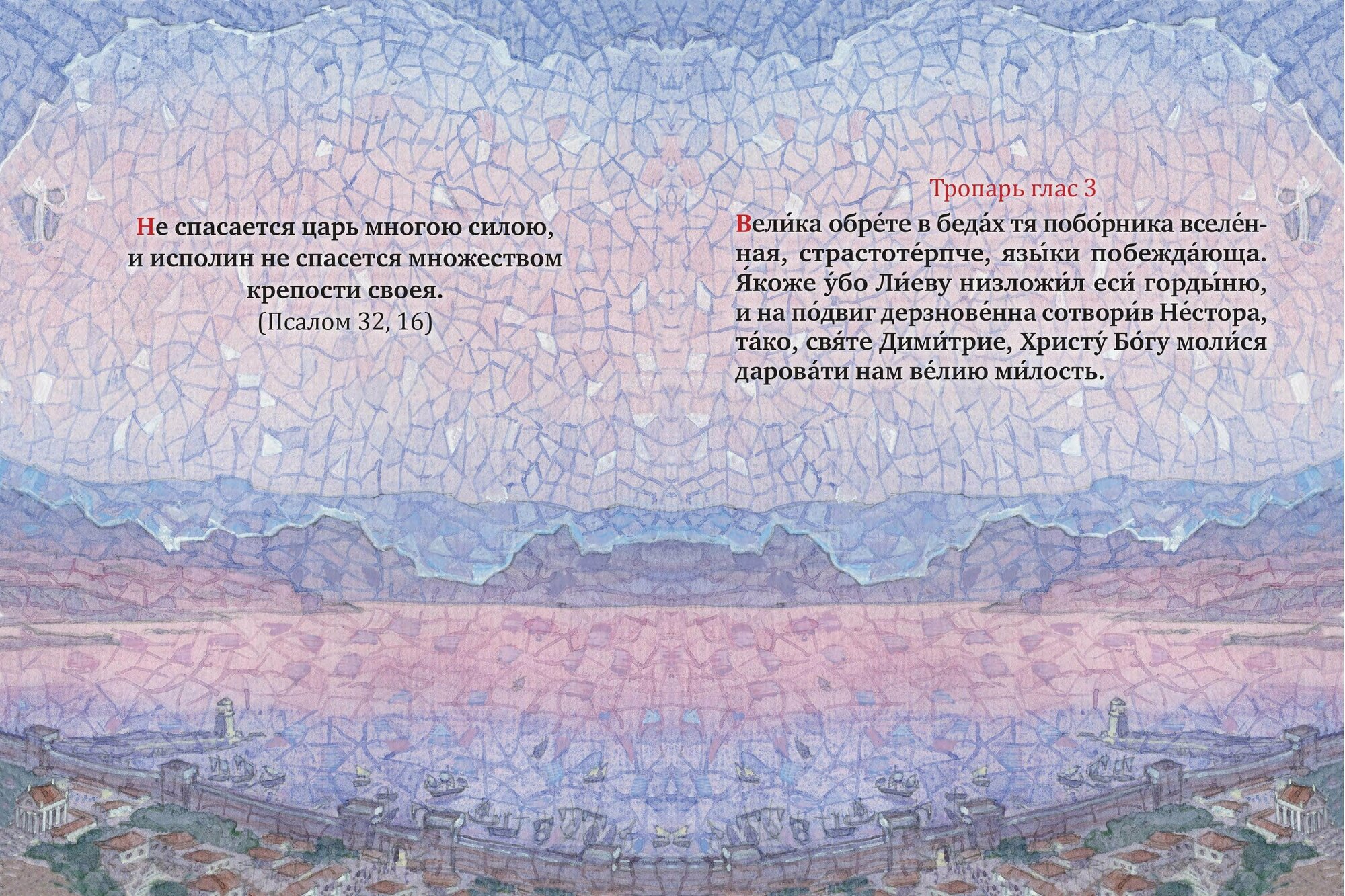 Книга «Святые воины Солуни» посвящена подвигу святых воинов Дмитрия и Нестора Солунских. Житие написано в стихотворной форме священником Анатолием Трохиным. Издание — высокохудожественное. Интересные полноценные иллюстрации улучшают восприятие текста детьми младшего и среднего возраста. Книга будет интересна благочестивым христанам и полезна детям.