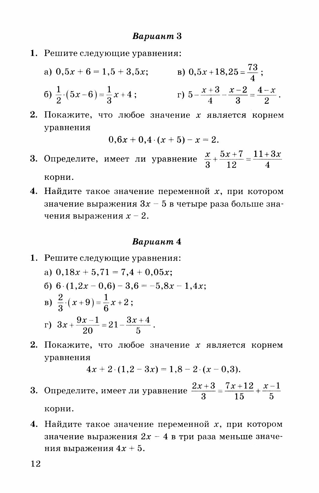 Контрольные и самостоятельные работы даются в четырёх вариантах двух уровней сложности: первые два варианта соответствуют среднему уровню сложности, 3-й и 4-й варианты рассчитаны на учащихся, проявляющих повышенный интерес к математике.