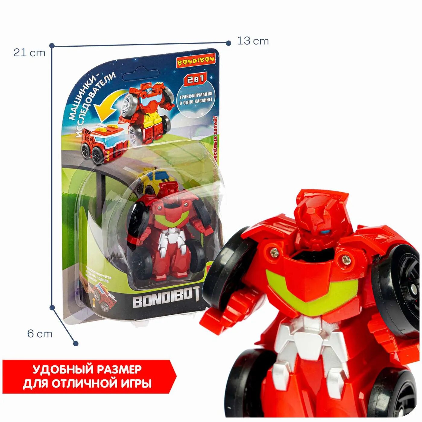 Игрушка трансформер "Bondibot 2в1" красный робот-машинка исследователь от ТМ Bondibon станет замечательным подарком любому мальчику.