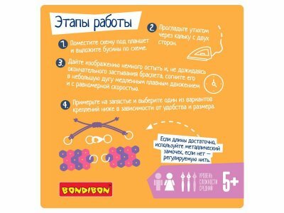 В комплект входит: набор термобусин, планшет, калька, цветная схема, пинцет, крепления для браслета.