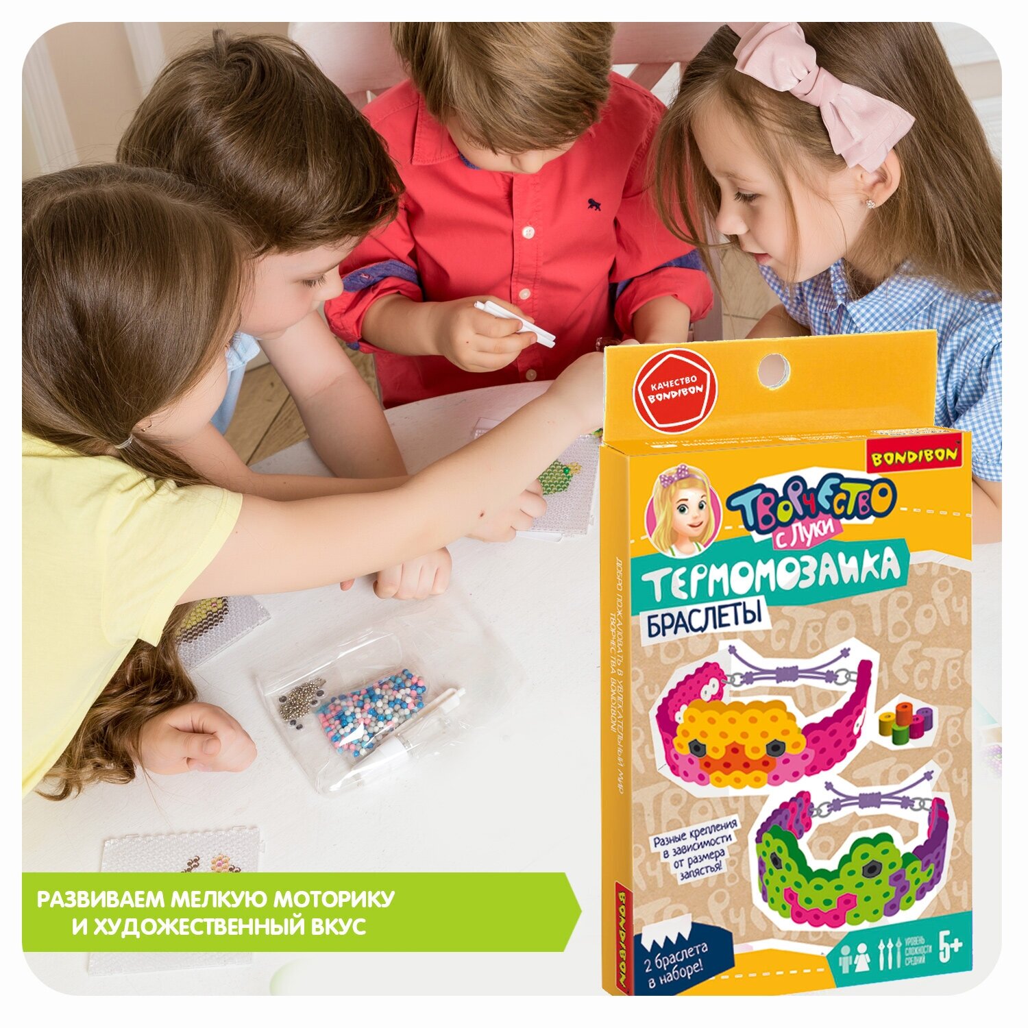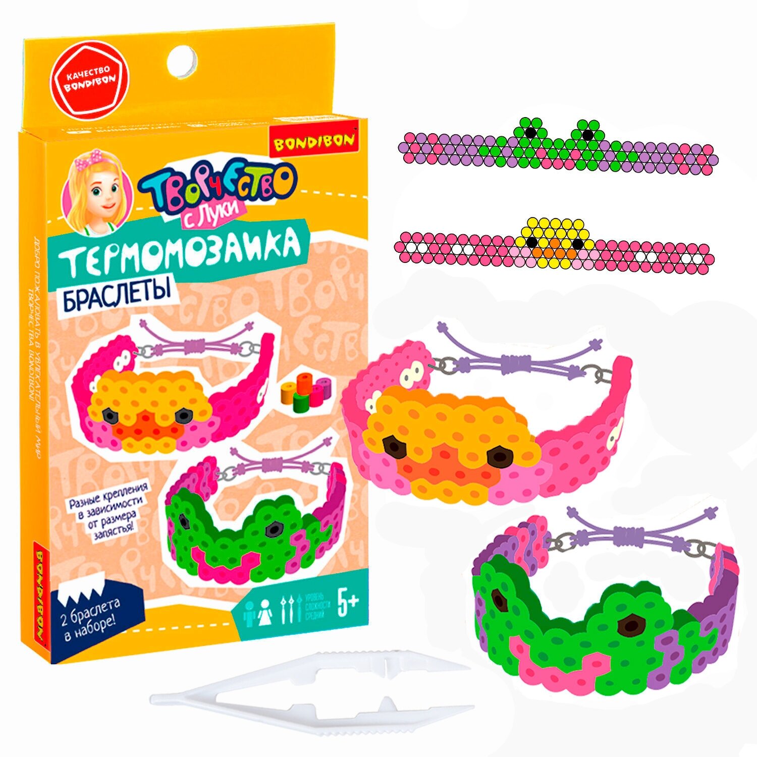 Развивайте фантазию и познавательные способности детей с набором для создания 2 браслетов лягушка и уточка от Бондибон! Соберите все термомозаики из серии Творчество с Луки!