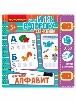 Сервис сравнения цен СкидкаГИД предлагает сравнить цены на товар «Мини-игры в дорогу для малышей Изучаем алфавит со стирающимся маркером Bondibon»