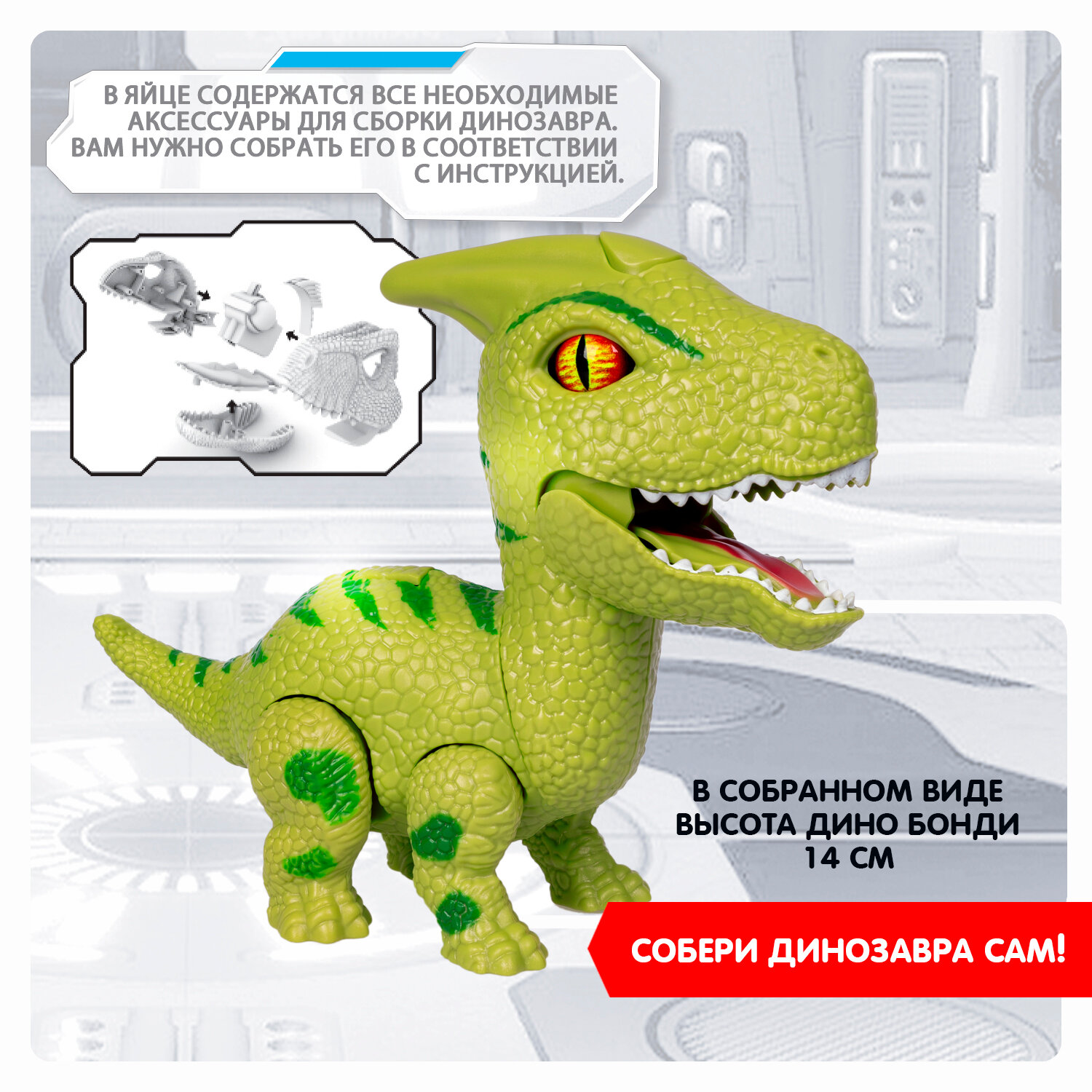 Сборный динозавр Дино Бонди. Паразауролоф со светом и звуком в яйце Bondibon