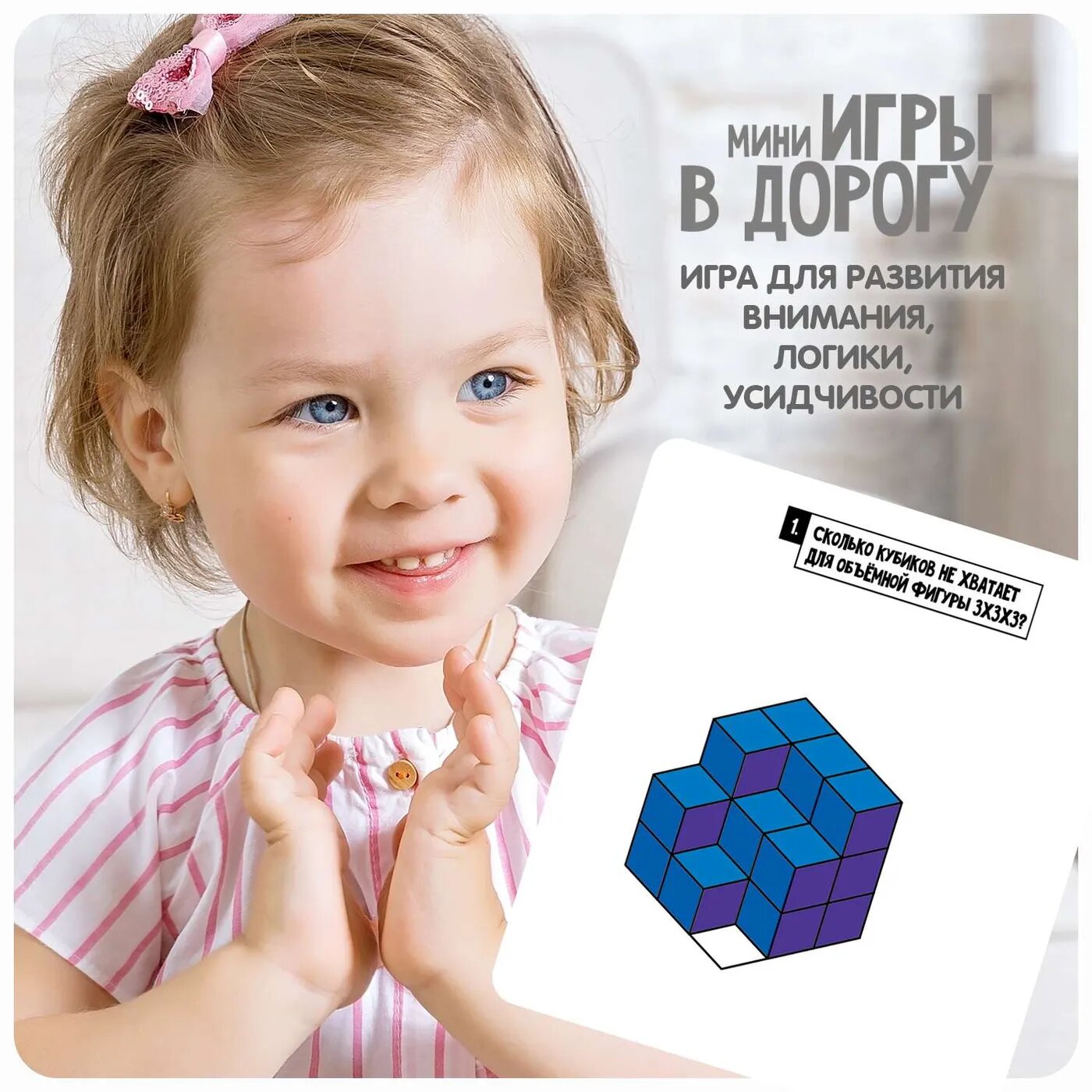 Выберите любую из тридцати карточек. Прочитайте задание. Впишите ответы стирающимся маркером. Пробуйте находить различные варианты решений. Не бойтесь ошибиться, стирайте ответы и выполняйте задания сколько угодно раз! Игра "Тренируем пространственное мышление" способствует развитию интеллектуальных способностей, усидчивости, внимания, воображения, логики и интереса к будущим школьным предметам.