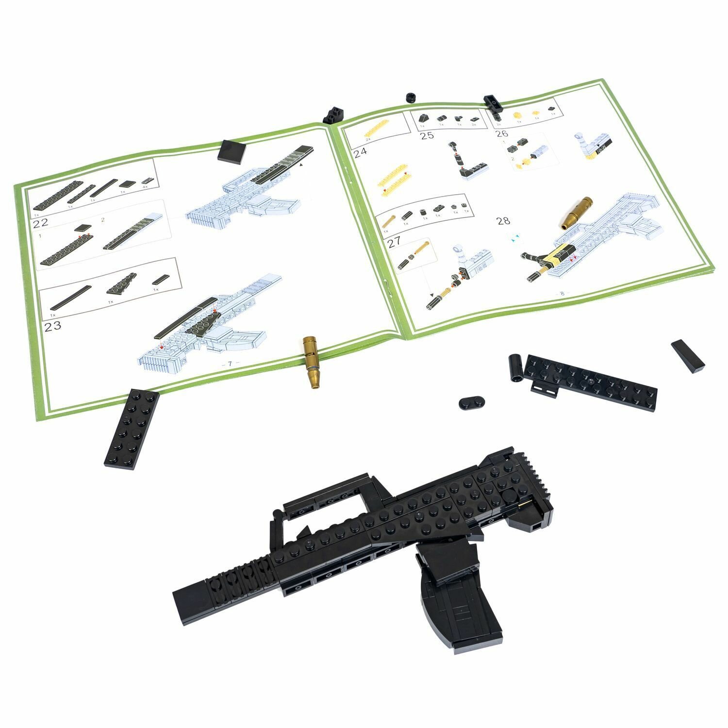 Используя инструкцию, соберите автомат и патроны из 170 деталей. Все детали совместимы с конструкторами от мировых производителей.